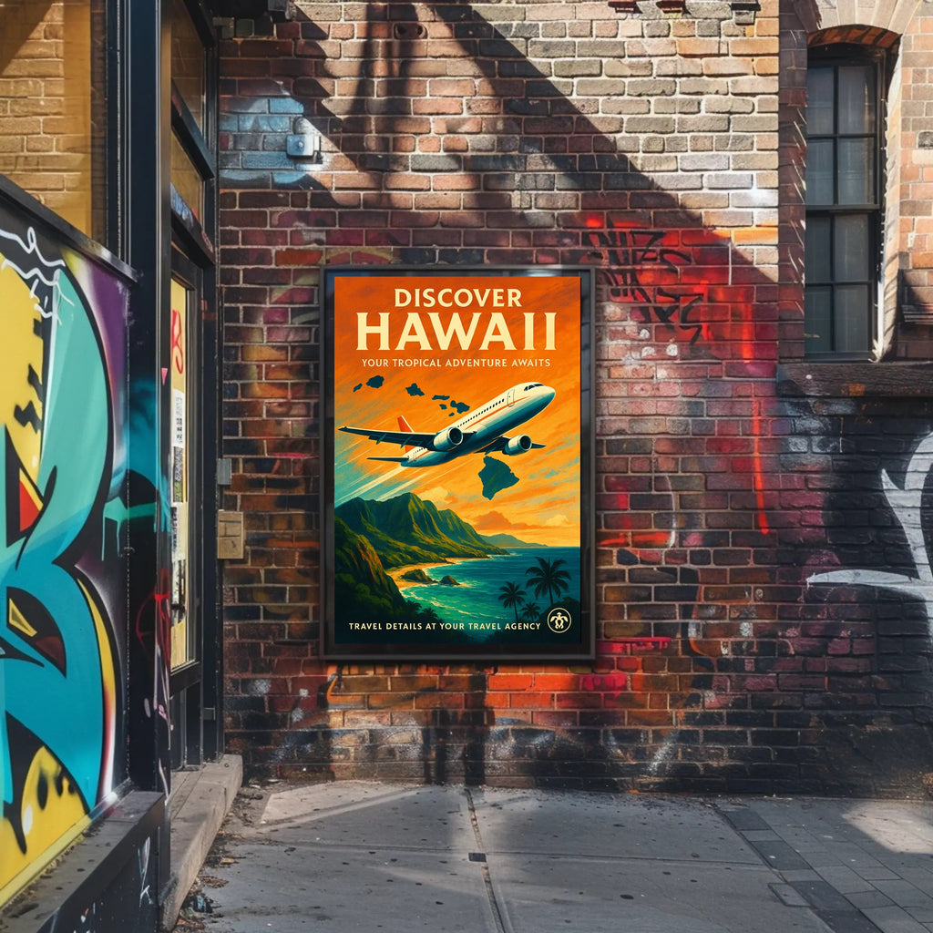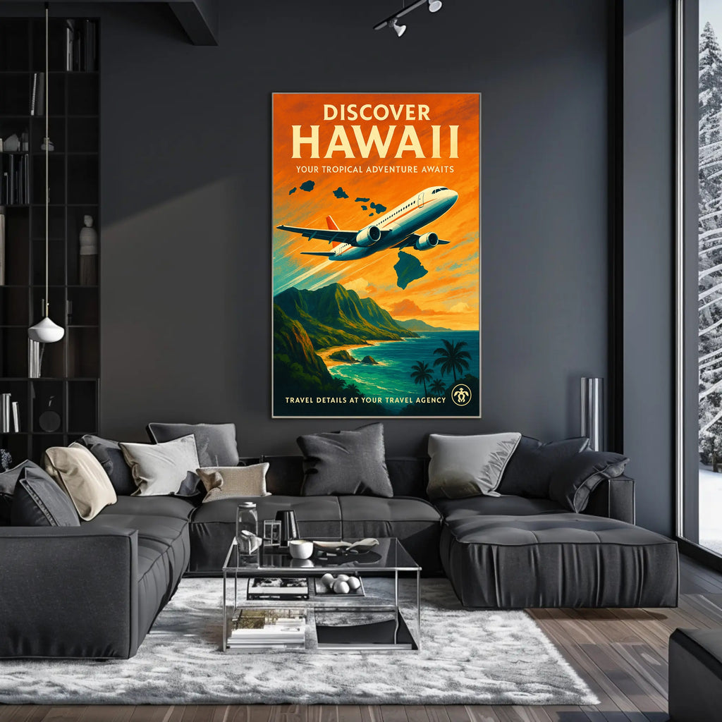 Perfect as a focal point or part of a travel-themed gallery, the Discover Hawaii Poster is an effortless way to transport any space to sun-drenched shores. Add this PosterGoat original to your cart today and bring a touch of tropical adventure to your walls.