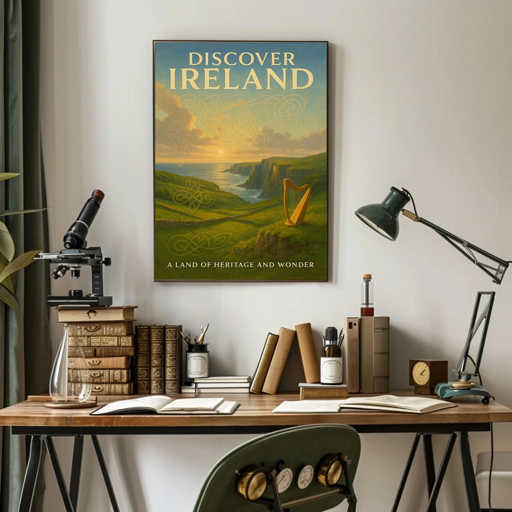Intro: This poster captures the essence of Discover Ireland A Land of Heritage and Wonder. Designed for decor lovers and wanderlust spirits, this art print adds charm to any room with visuals inspired by real-world scenery. Perfect for living rooms, bedrooms, offices, or galleries, it brings a touch of Irish charm wherever you display it.