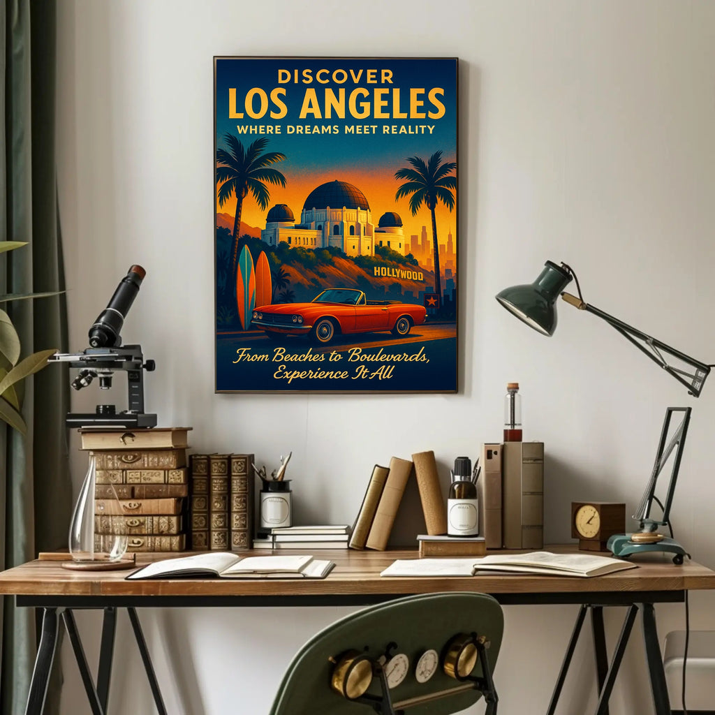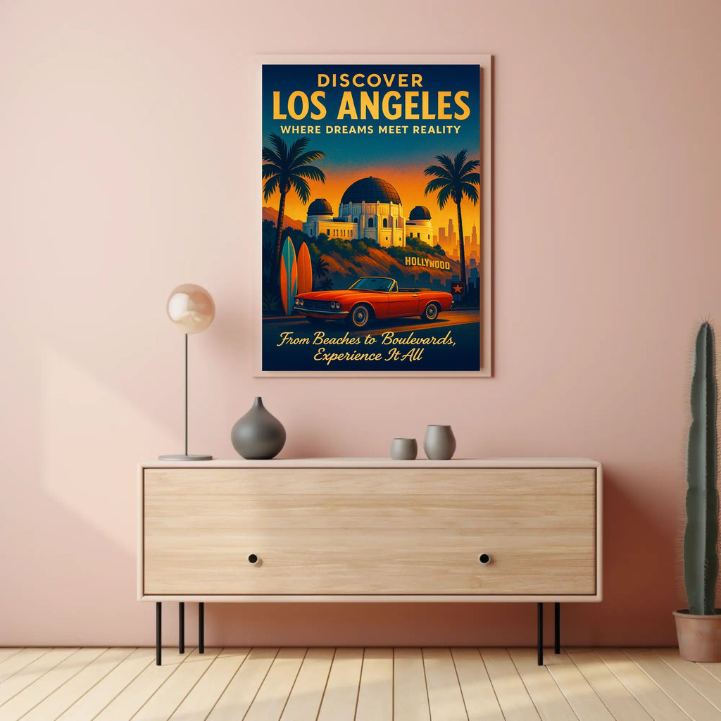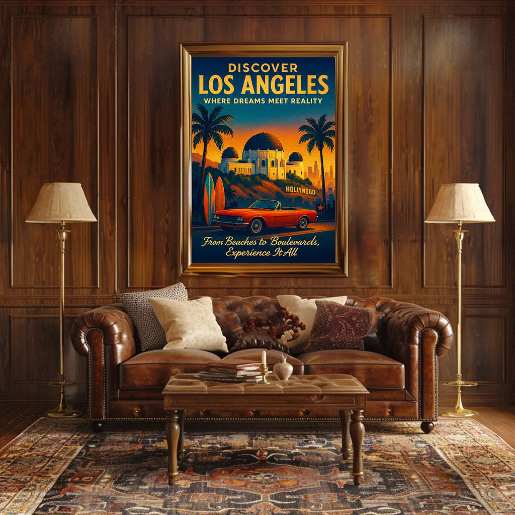 Whether you're decorating a living room, office, or vacation rental, this Discover Los Angeles Poster brings cinematic warmth and wanderlust to any wall. Add a slice of LA to your space — order now from PosterGoat and experience the city where dreams meet reality.