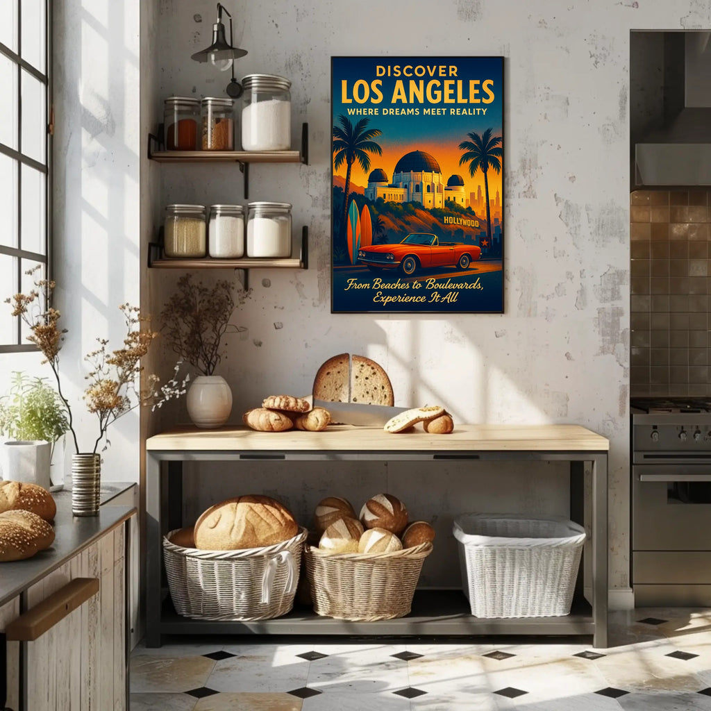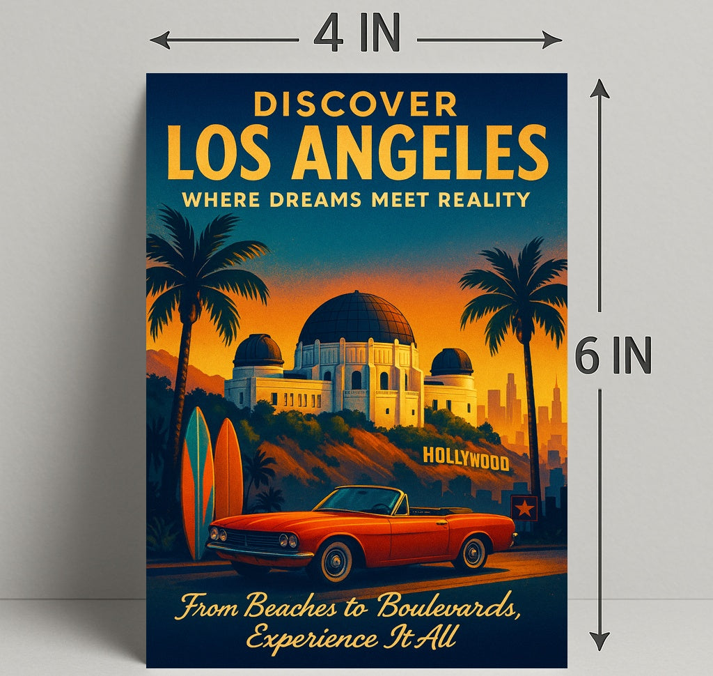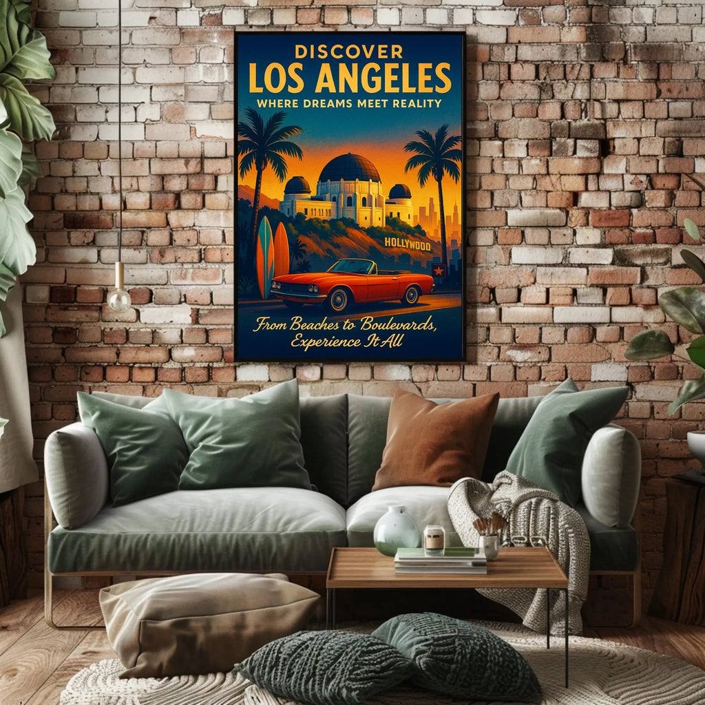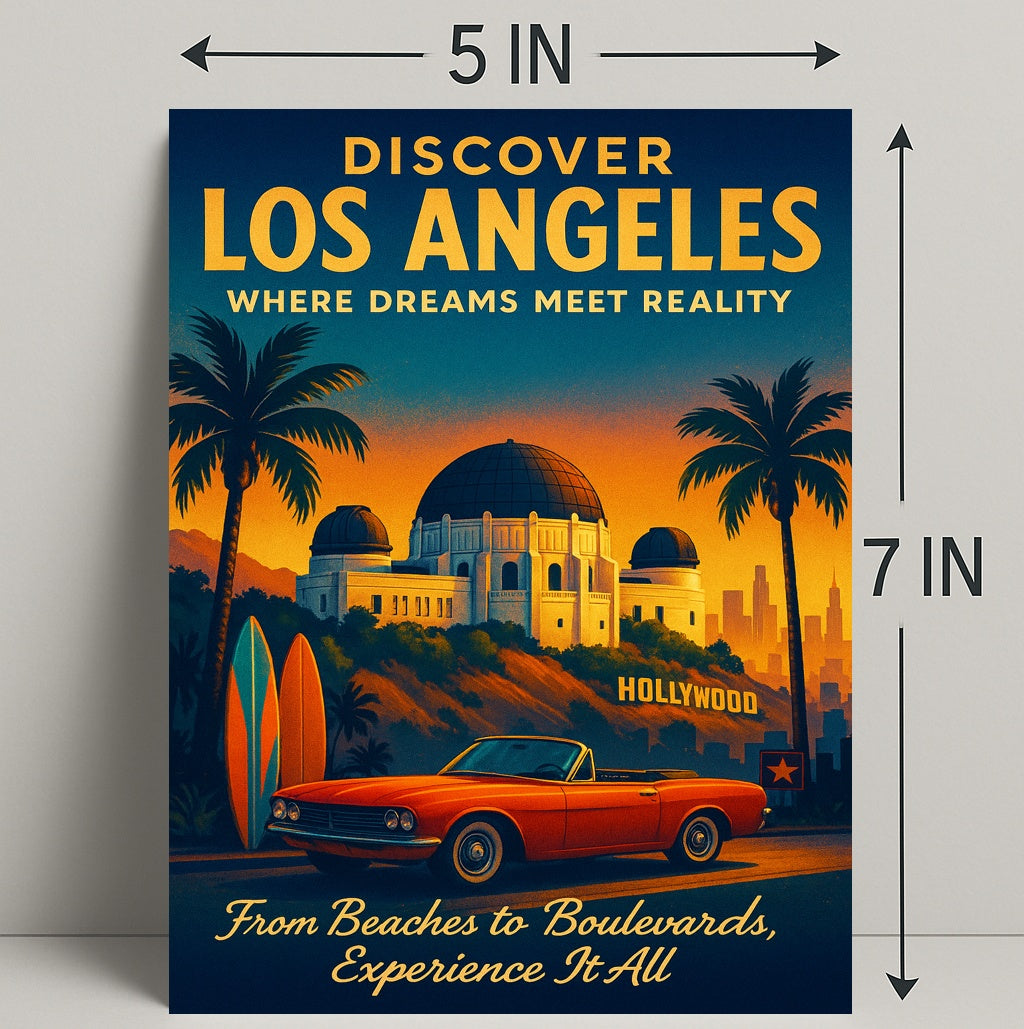 Whether you're decorating a living room, office, or vacation rental, this Discover Los Angeles Poster brings cinematic warmth and wanderlust to any wall. Add a slice of LA to your space — order now from PosterGoat and experience the city where dreams meet reality.
