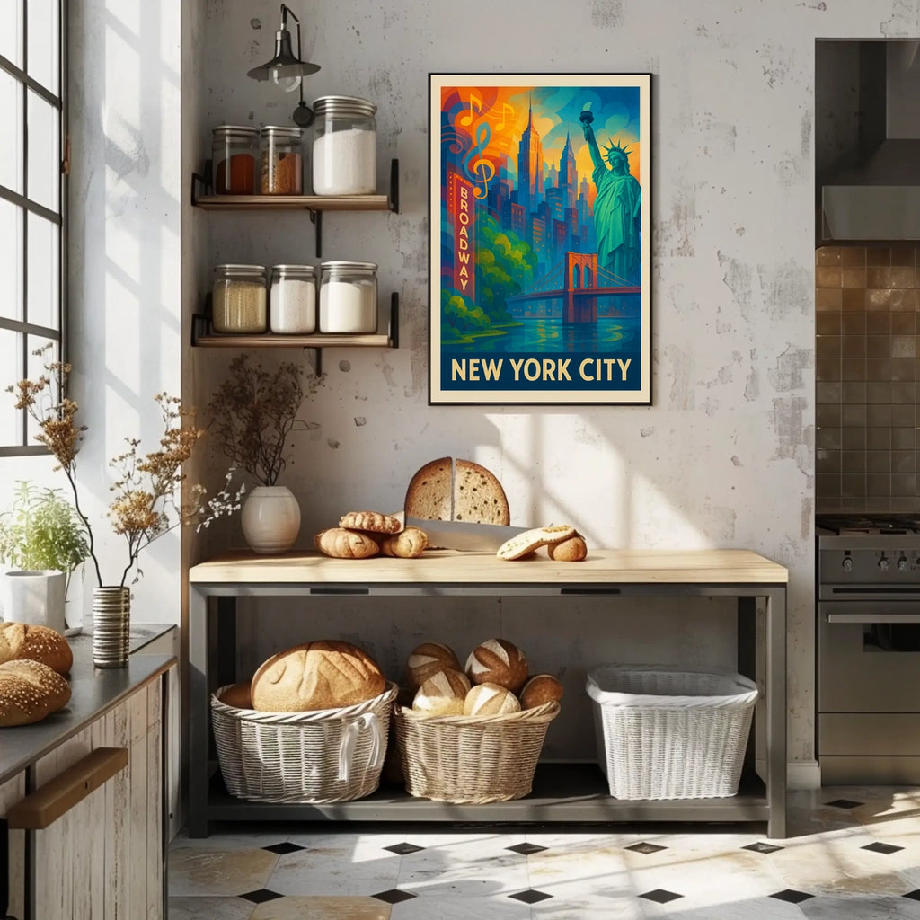 Immerse yourself in the vibrant energy of New York City with this stunning poster. Featuring the Statue of Liberty, the Brooklyn Bridge, and a lively Broadway scene, it captures the city’s dynamic skyline and cultural richness. Perfect for urban explorers and design lovers, this travel poster brings iconic NYC vibes into any room.