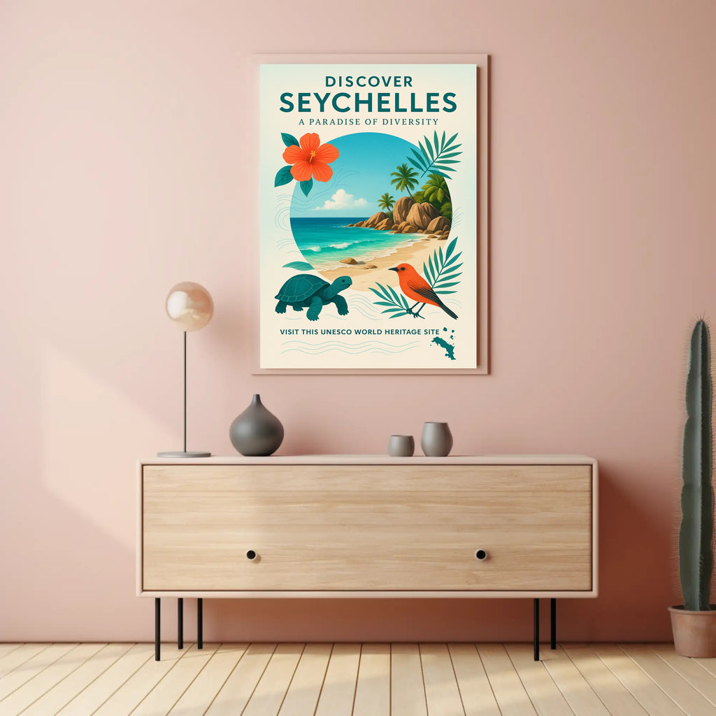 Bring the spirit of Seychelles into your space with this evocative PosterGoat print — add to cart now and start your visual getaway.