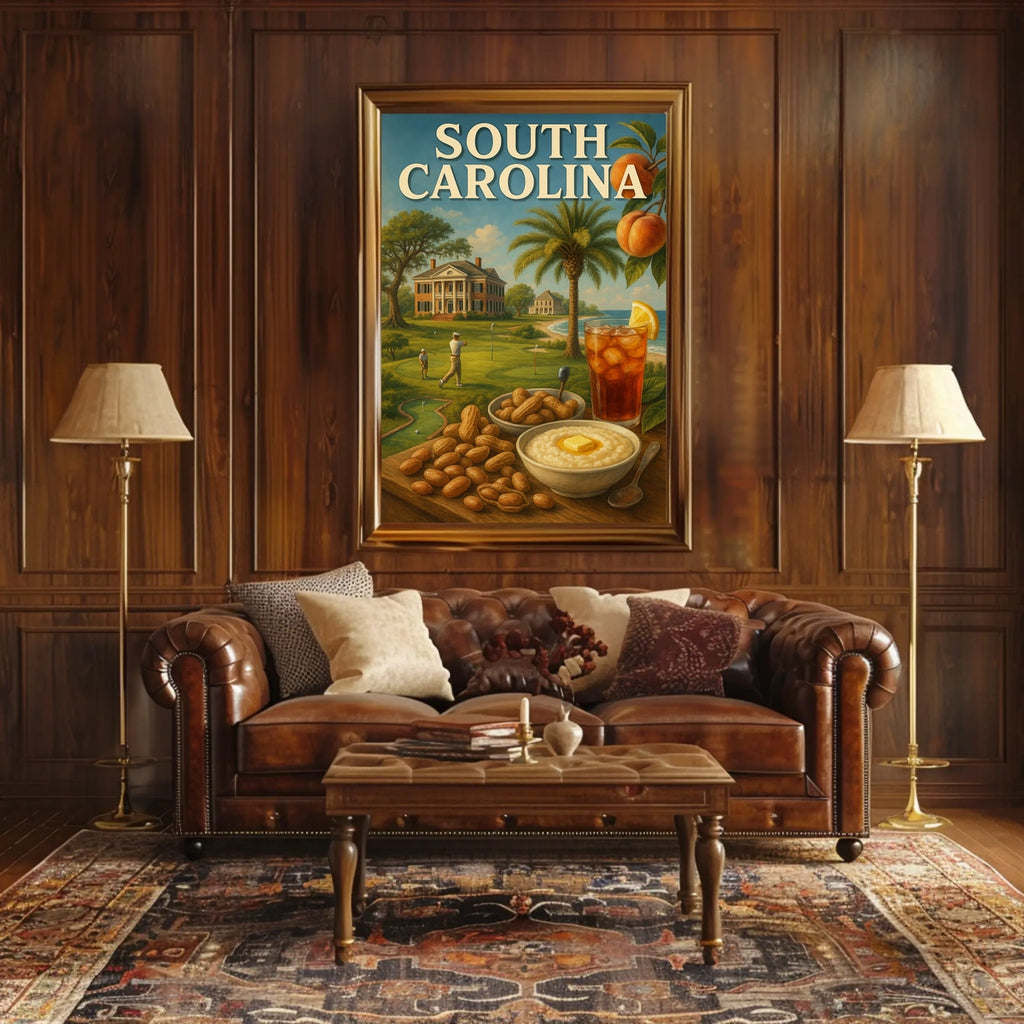 - Detailed design highlighting the scenic landscapes of South Carolina