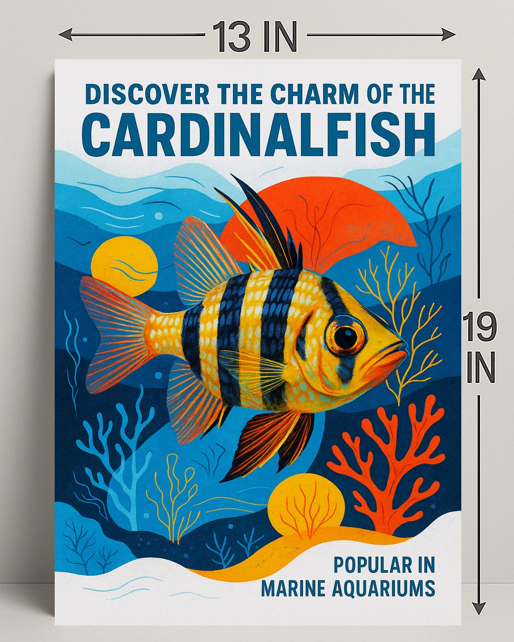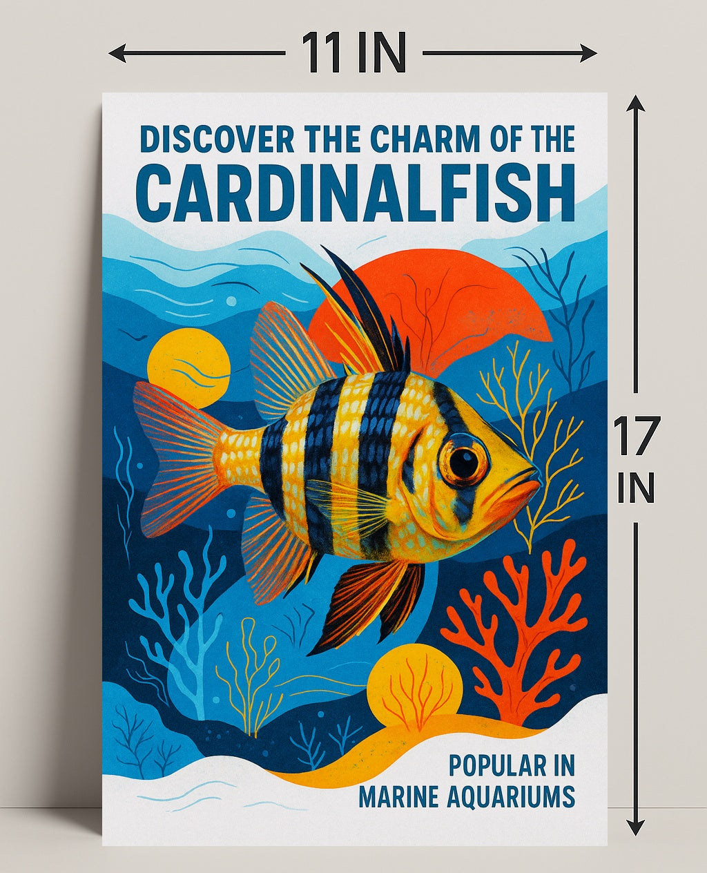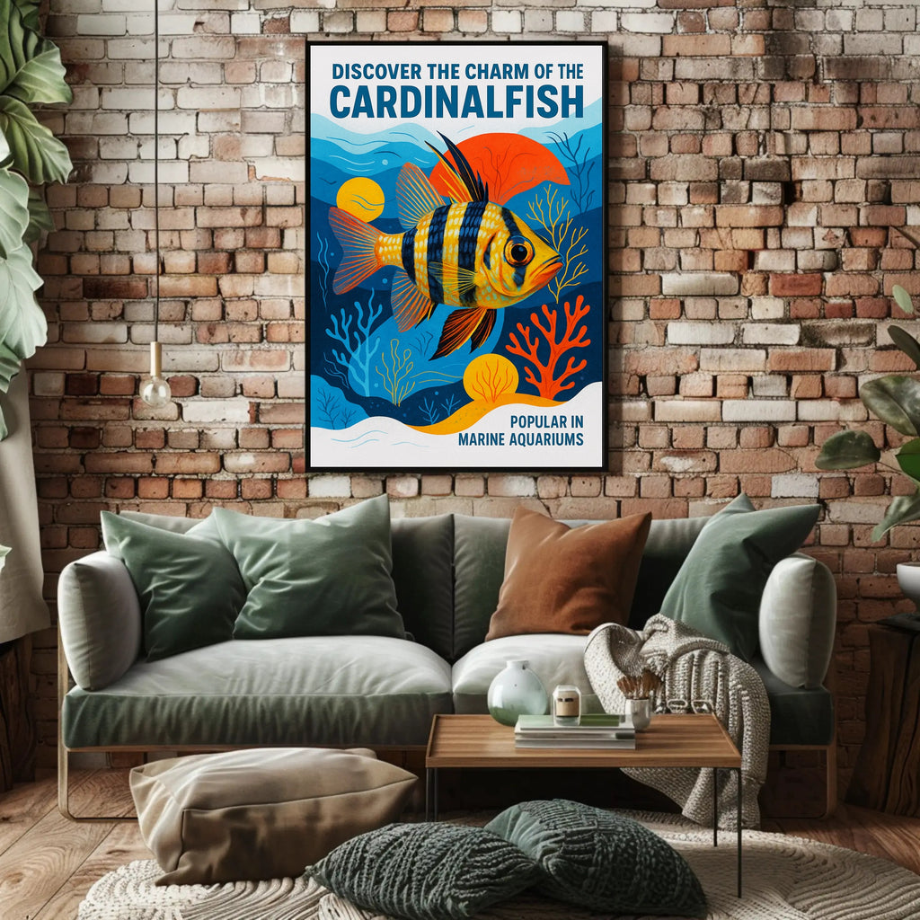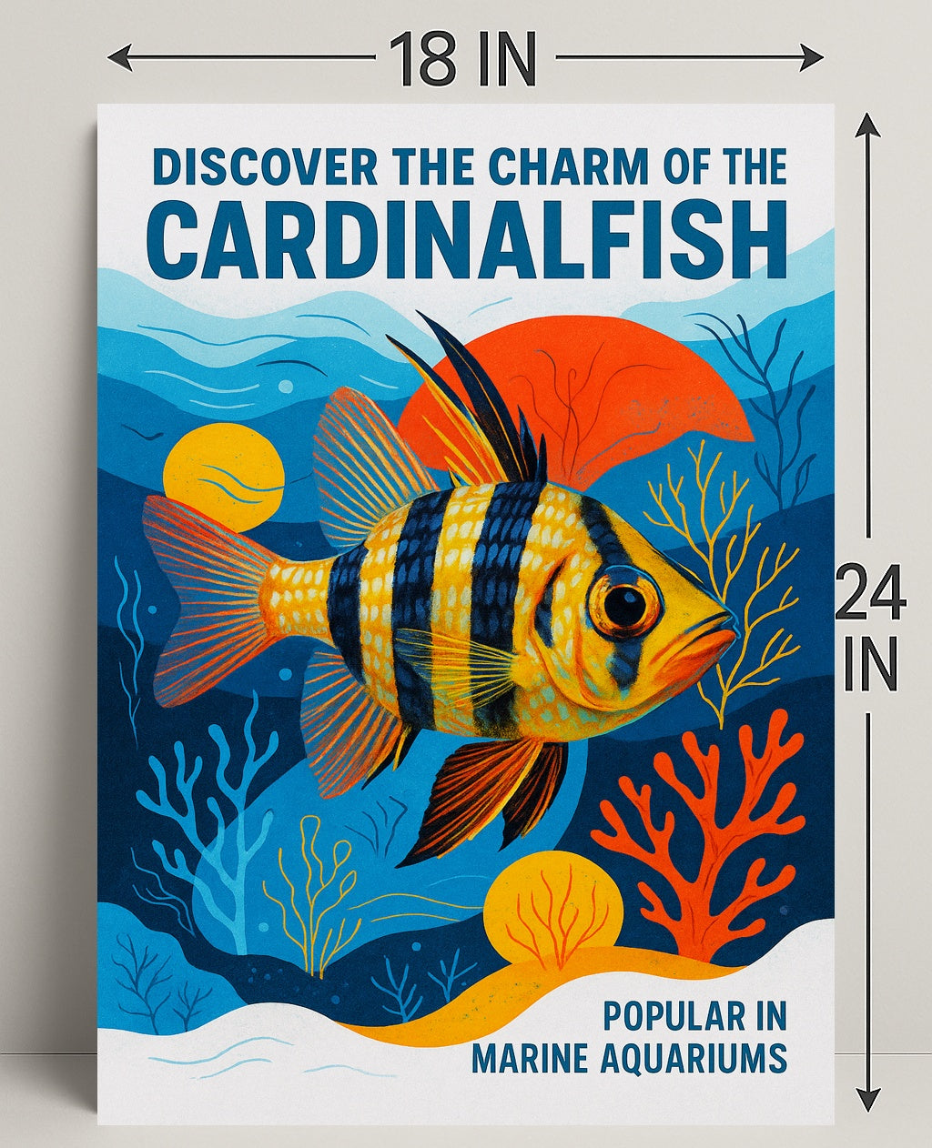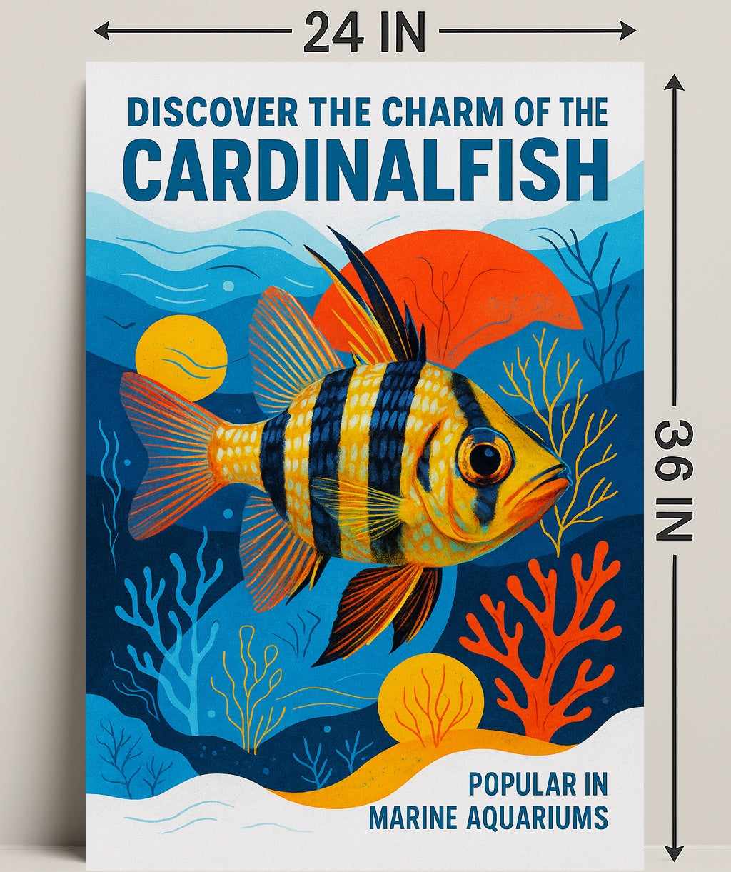 Bring underwater wonder to your walls with the "Discover the Charm of the Cardinalfish" poster by PosterGoat. This striking art print blends vibrant coastal hues and minimalist composition to create a bold focal point for living rooms, offices, nurseries, or marine-themed spaces.