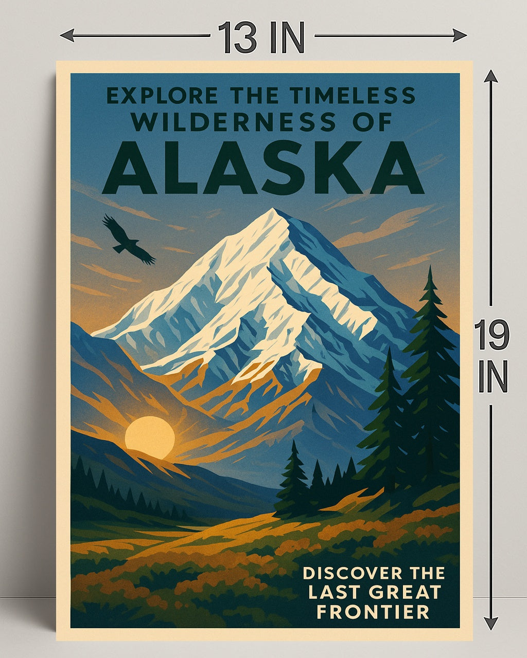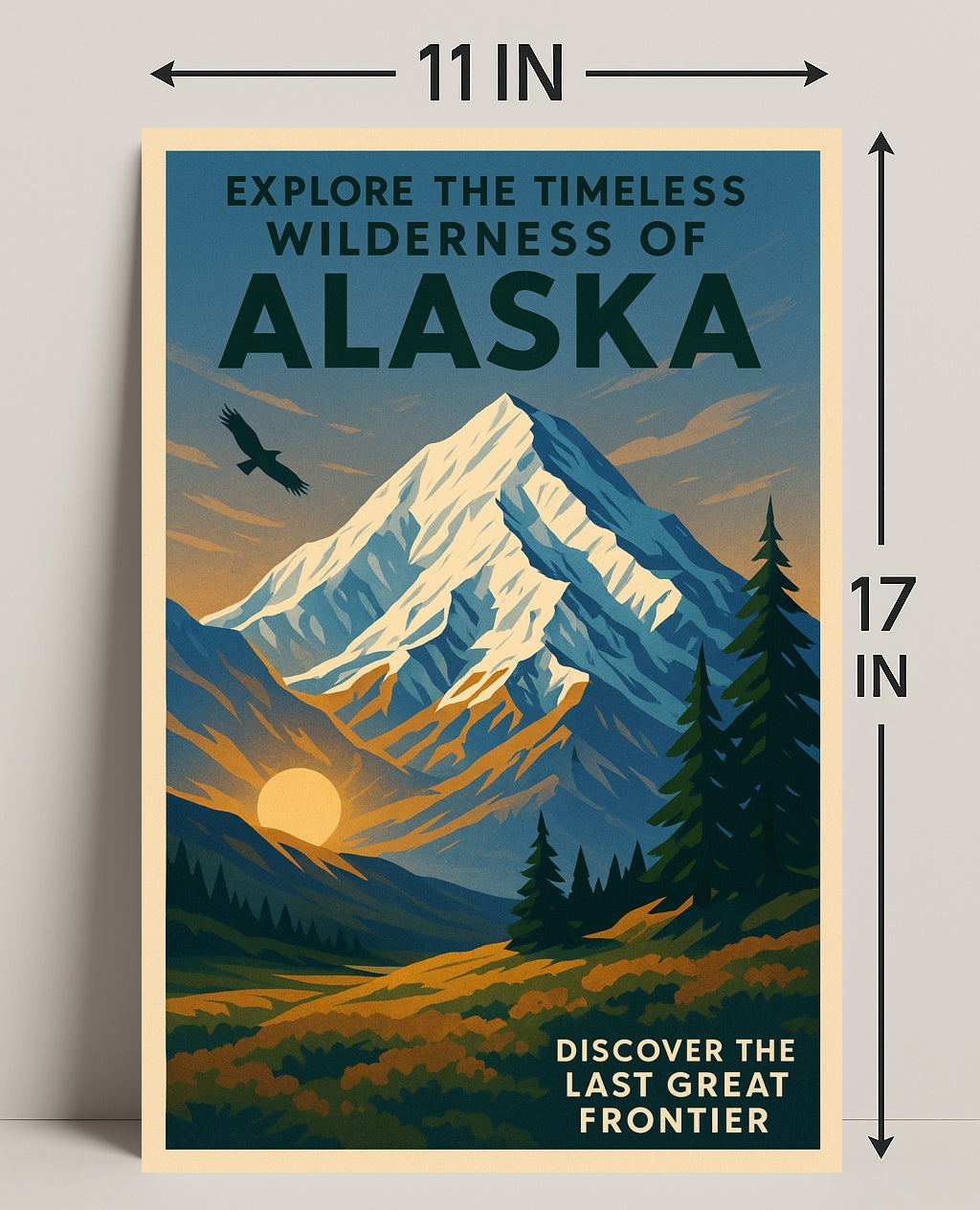 This poster makes a memorable statement whether framed or mounted as a standalone print — an ideal gift for anyone drawn to exploration, landscape art, or statement wall decor. Add a touch of the last great frontier to your space and let PosterGoat bring the wilderness home.