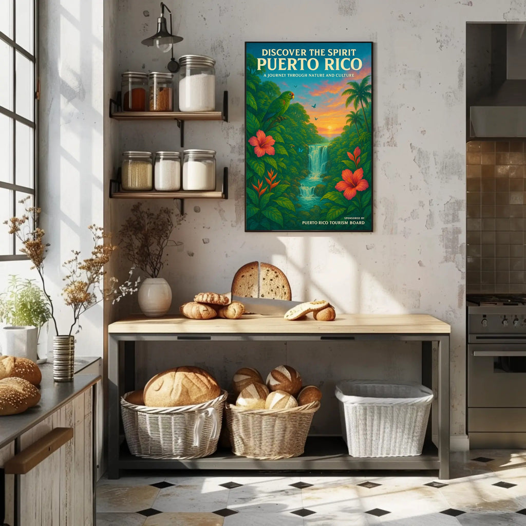 This poster is an ideal gift for wanderlust spirits, collectors of travel memorabilia, or anyone wanting to add a tropical, uplifting focal point to their wall. Order now from PosterGoat and let Puerto Rico's spirit brighten your space—add to cart today and start your visual journey.