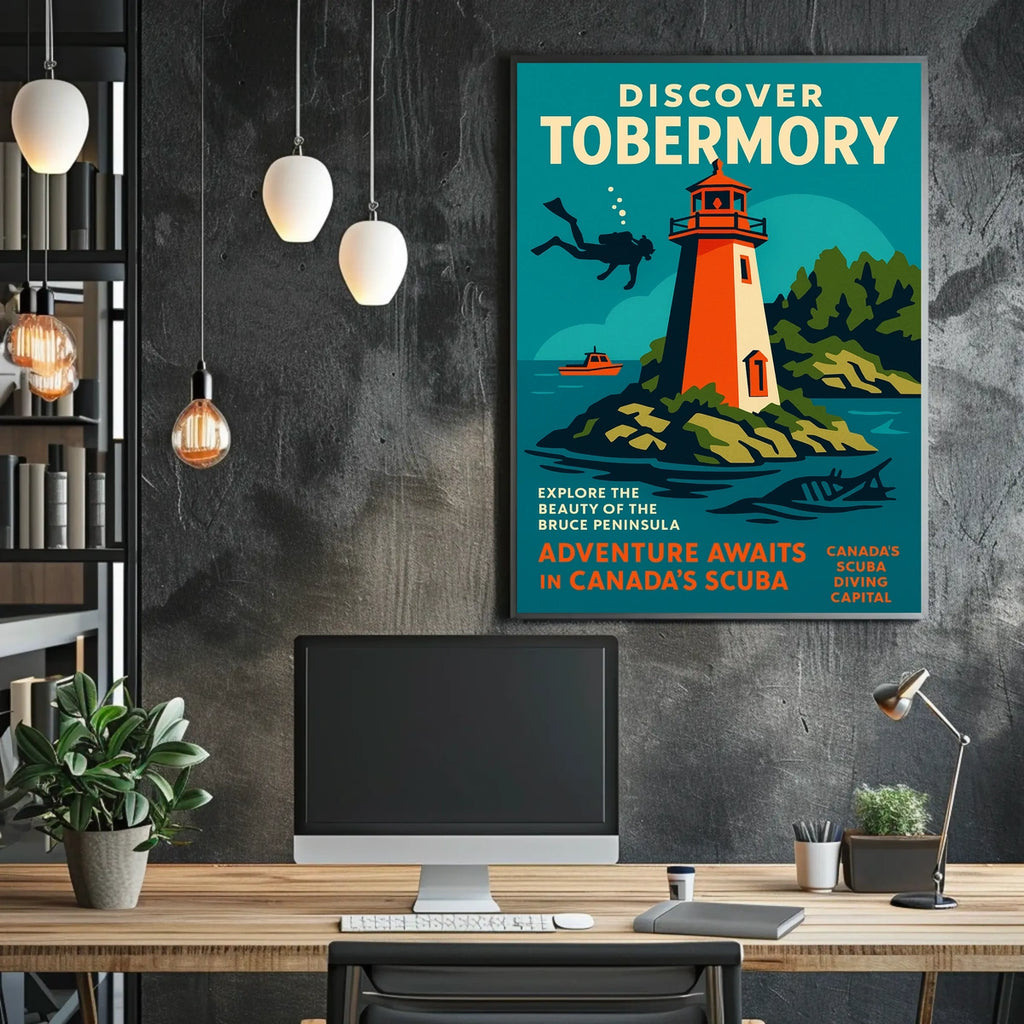 Own a piece that brings Tobermory’s charm into your home and invites everyday wanderlust. This poster complements existing decor and becomes a natural conversation starter. Ready to elevate your walls? Shop now and transform your space with this timeless scenic print.