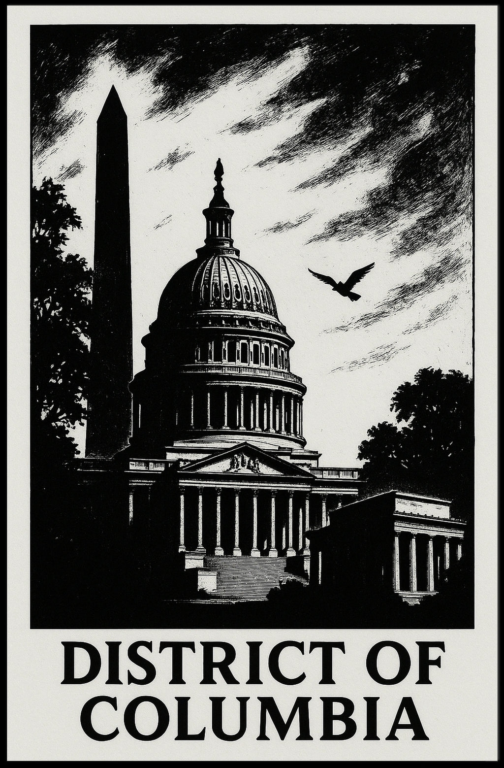 - Detailed design highlighting the District of Columbia Capitol silhouette