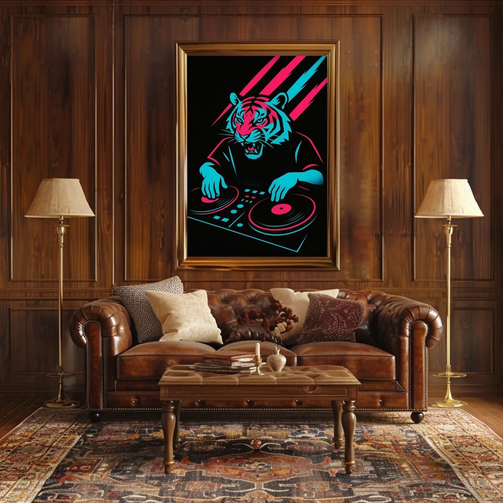 - Printed with precision and made to inspire, this artwork is more than decoration—it’s a conversation piece that connects art, music, and style. Bring DJ Tiger Vibes into your home, classroom, or office today and let your walls tell a powerful story.