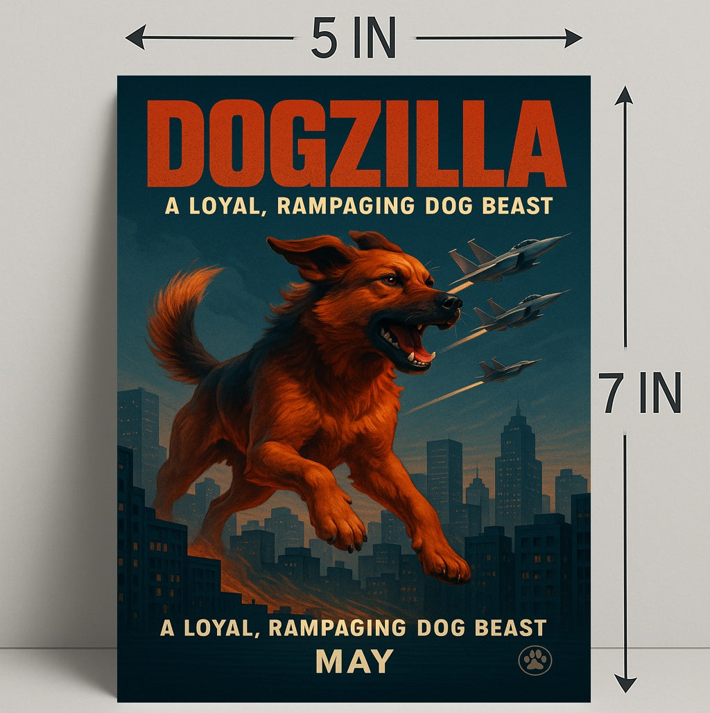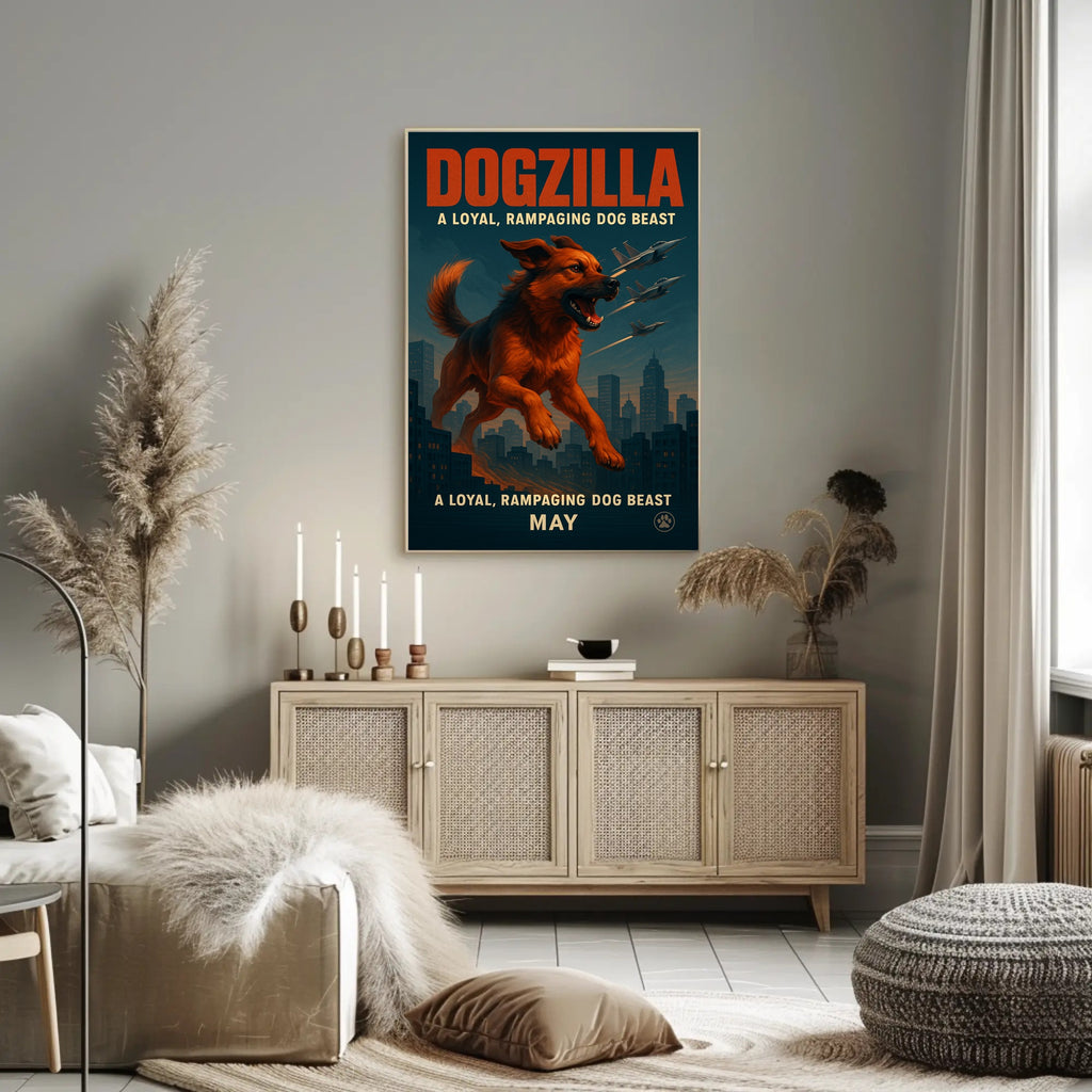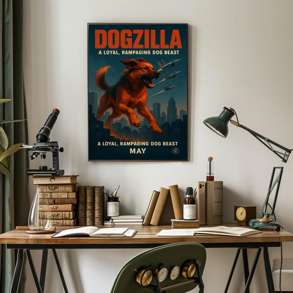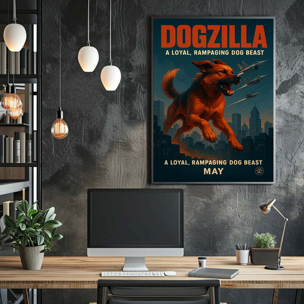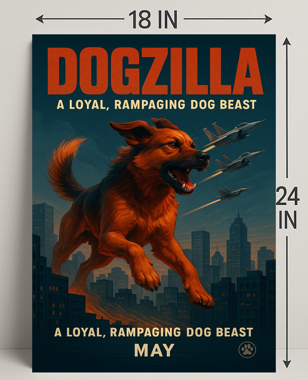 Transform your decor with the Dogzilla A Loyal, Rampaging Dog Beast Poster. Its remarkable appeal and artistic flair make it a must-have for anyone looking to invigorate their space. Don’t miss the chance to own this unique piece of wall art—order yours today!