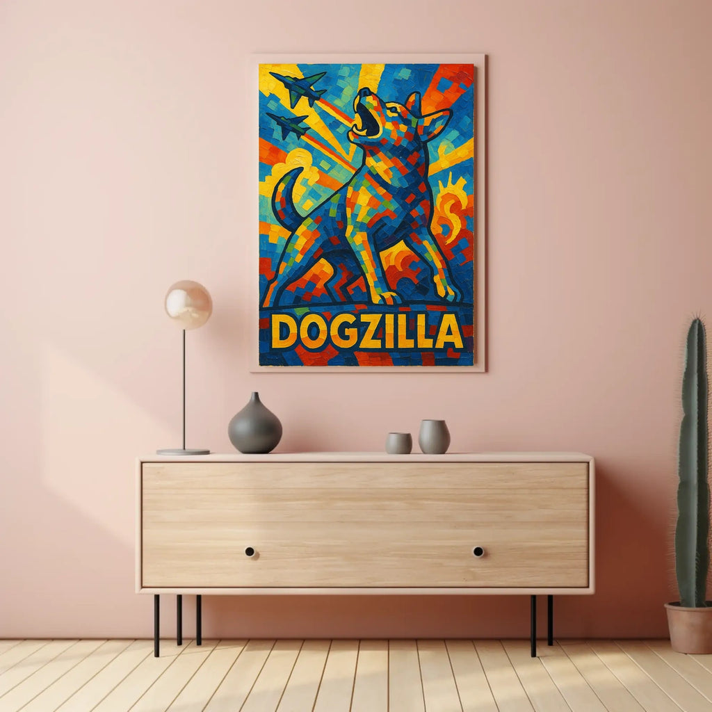 Printed with precision and made to inspire, this artwork is more than decoration—it’s a conversation piece that connects whimsy, culture, and style. Bring Dogzilla into your home, classroom, or office today and let your walls tell a powerful story.