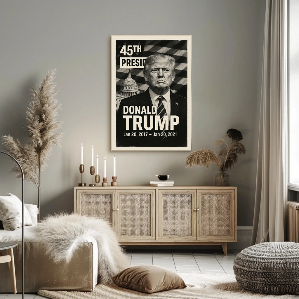 Celebrate the beauty of Donald Trump 45th President of the United States Digital Montaje Poster with this timeless wall art. Designed to capture its unique appeal, this piece is perfect for collectors, enthusiasts, or anyone who wants to bring meaning and inspiration into their space. A bold poster and portrait in one, it blends history, american politics, and contemporary style to create a striking wall art piece for homes, offices, or classrooms.