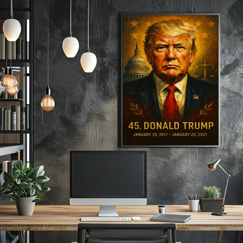 This poster captures the essence of Donald Trump 45th President. Designed for decor lovers and wanderlust spirits, this art print adds charm to any room with visuals inspired by real-world scenery.