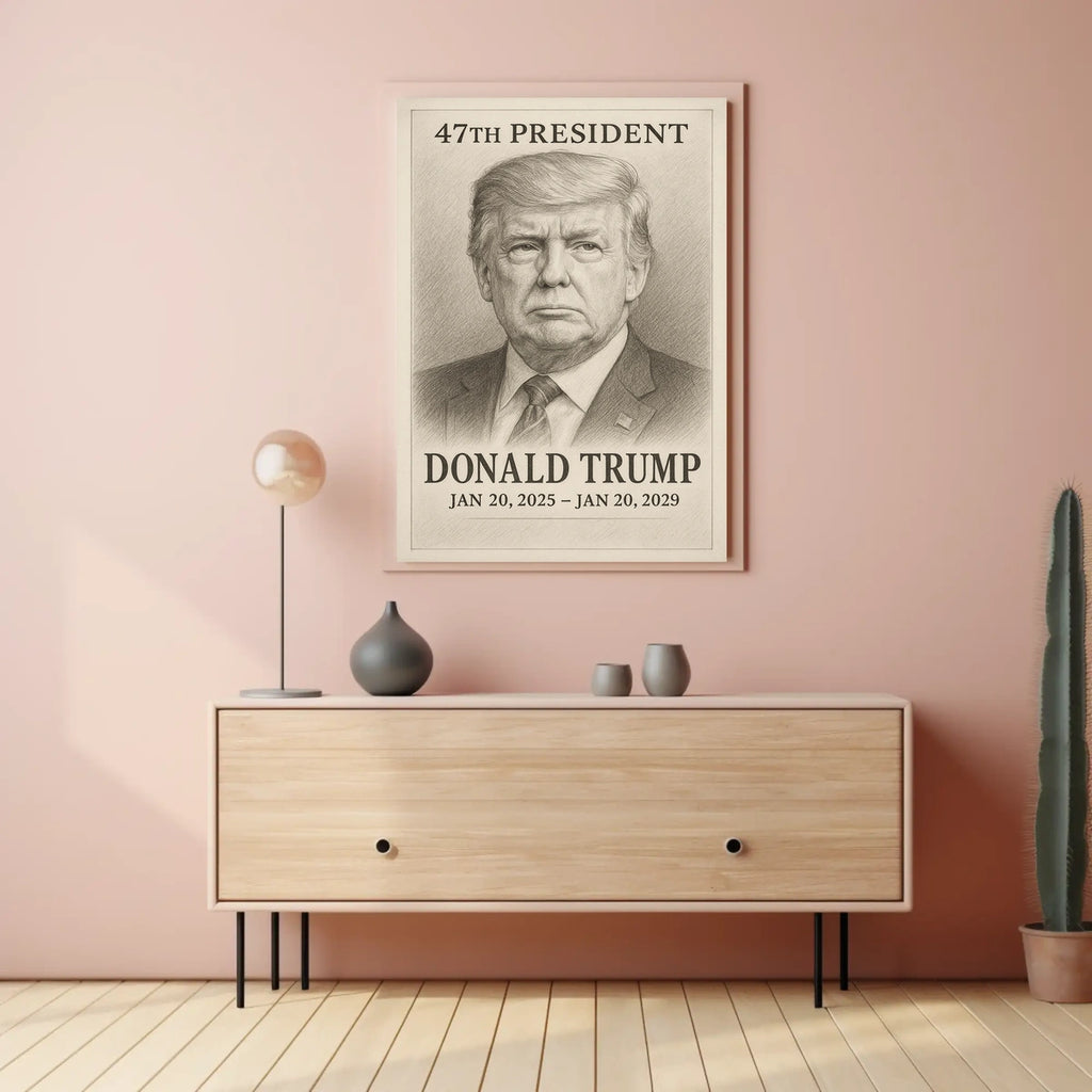 - Printed with precision and made to inspire, this artwork is more than decoration—it’s a conversation piece that connects history, culture, and style. Bring the Donald Trump 47th President Poster into your home, classroom, or office today and let your walls tell a powerful story.