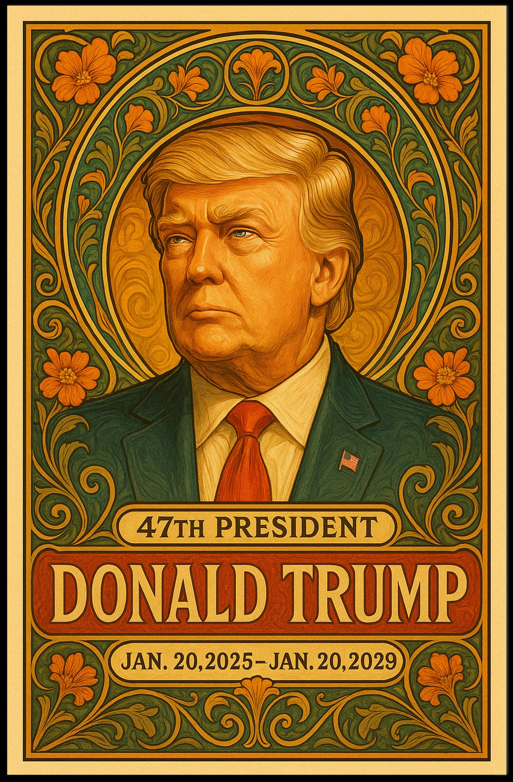 This poster is as much a tribute to history as it is to Trump's unwavering presence in the political arena.