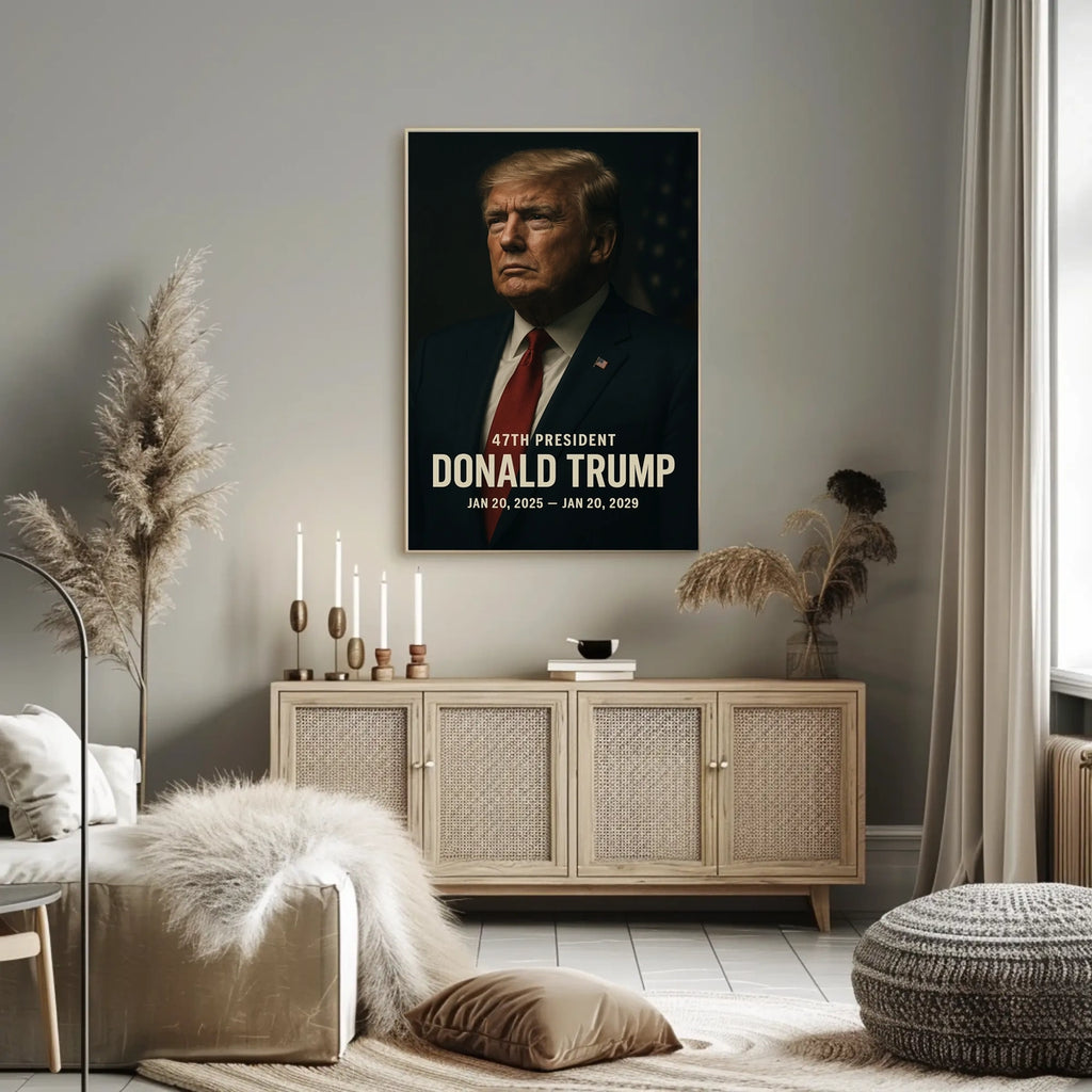 Celebrate the beauty of Donald Trump Resolve in Leadership Poster with this timeless wall art. Designed to capture its unique appeal, this piece is perfect for collectors, enthusiasts, or anyone who wants to bring meaning and inspiration into their space. It portrays a leader during his presidency from 2025 to 2029, embodying unwavering resolve against an artistically blurred backdrop reminiscent of the American flag’s stars and stripes.
