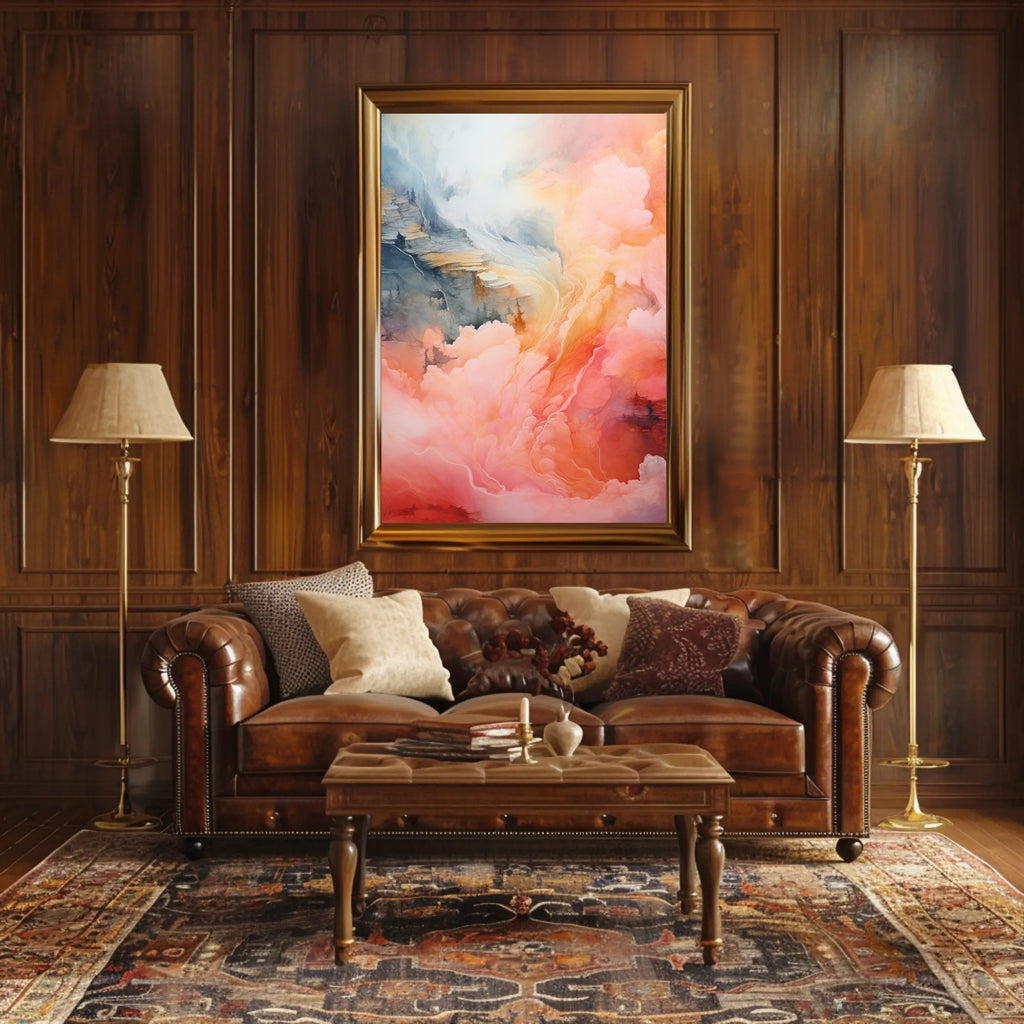 Atmospheric color harmony: Lush pastel gradients and subtle marbling create a calming focal point that complements modern and Scandinavian interiors.