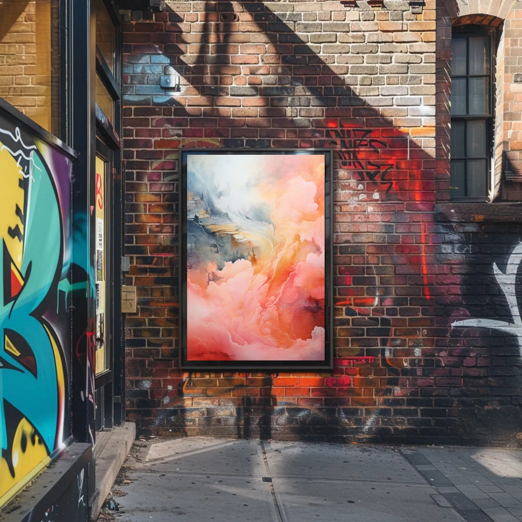 Elevate your walls with the Dreamscape In Pastel Poster by PosterGoat — a mesmerizing scenic print that blends soft coral-pinks, whispering blues, and sunlit peaches into a flowing, cloud-like landscape. This minimalist, artful poster captures the feel of a tranquil dreamscape, perfect for living rooms, bedrooms, offices, or gallery-style displays.