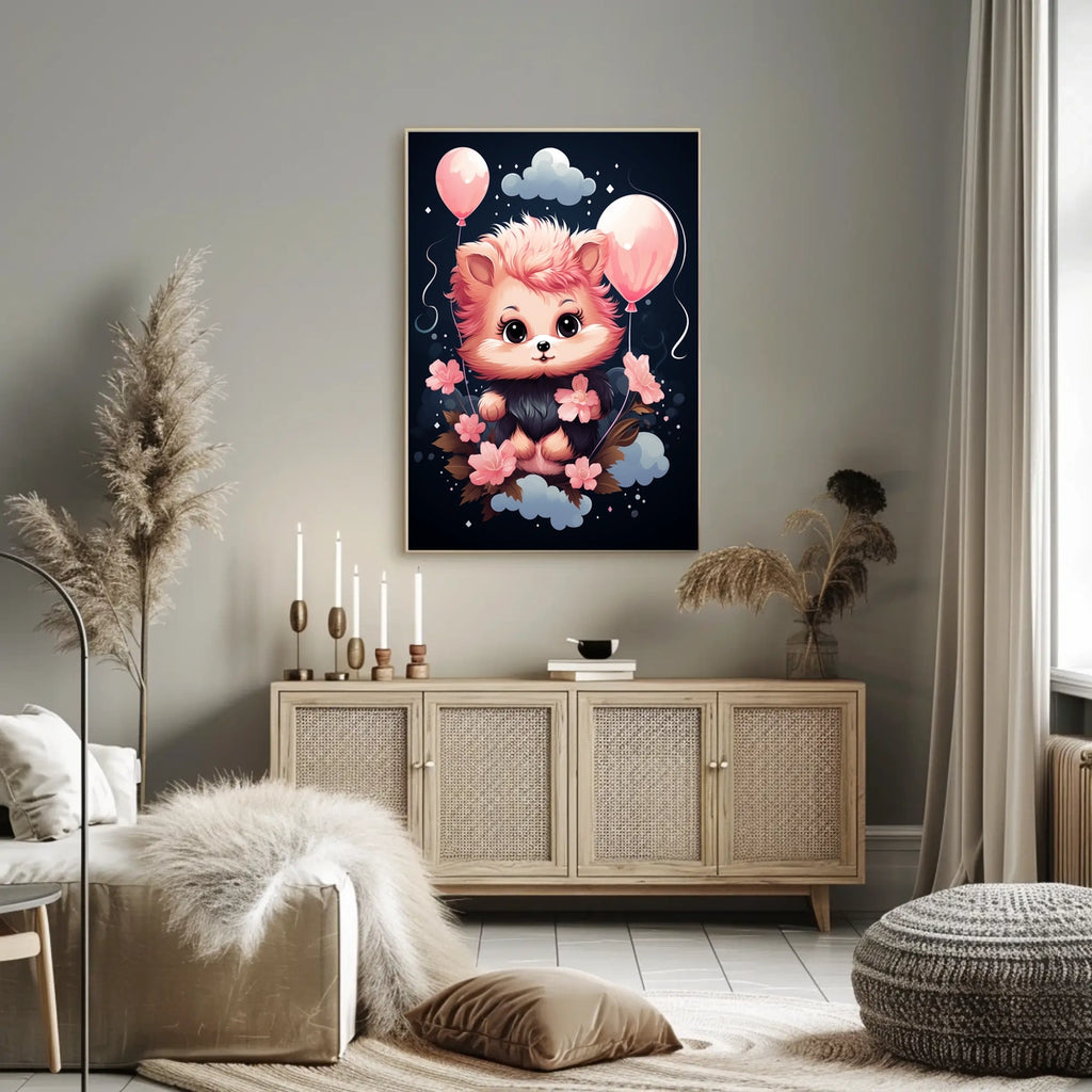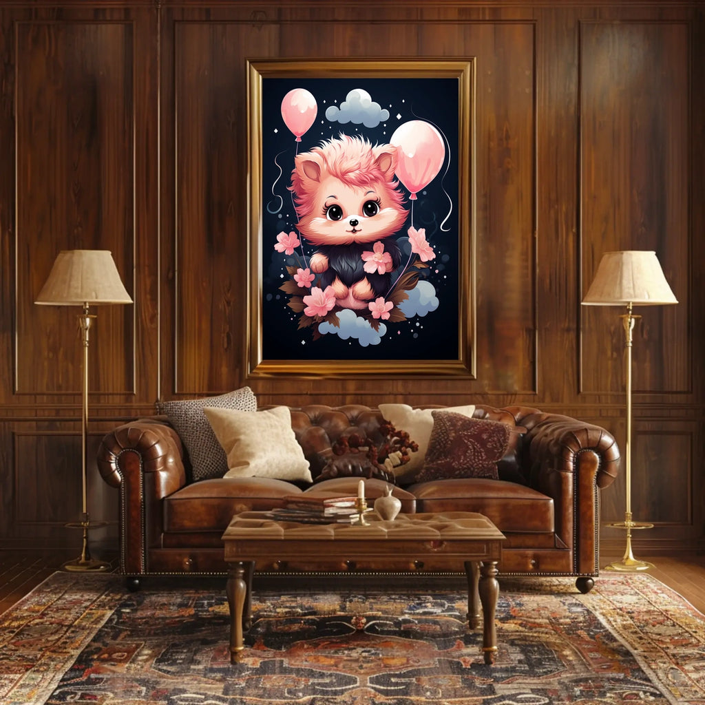 Step into a whimsical scene with Dreamy Balloon Adventure, a charming fluffy creature drifting through the clouds among pink balloons and delicate flowers. This enchanting display captures imagination, spark curiosity, and bring a touch of wonder to any space—perfect for cozy corners, nurseries, or creative work areas.