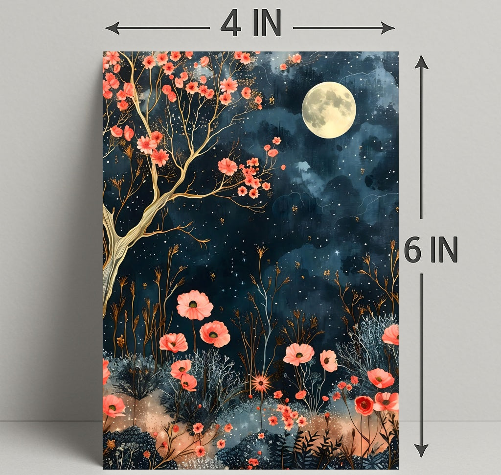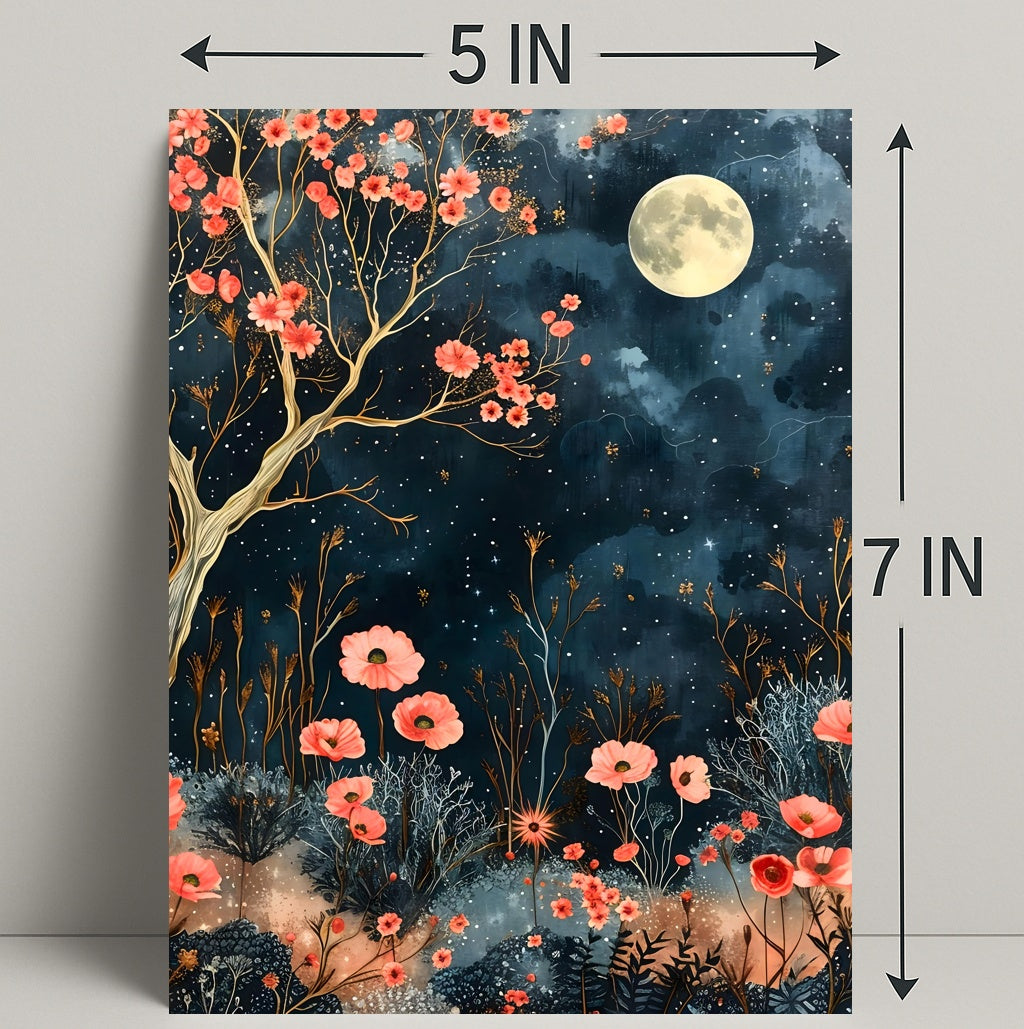 Enhance your home with the enchanting beauty of the Dreamy Enchanted Garden Under Moonlit Sky Poster from PosterGoat. This art piece not only uplifts your surroundings but also serves as a reminder of nature's serene moments. Don't miss outβbring this magical artwork into your home today!