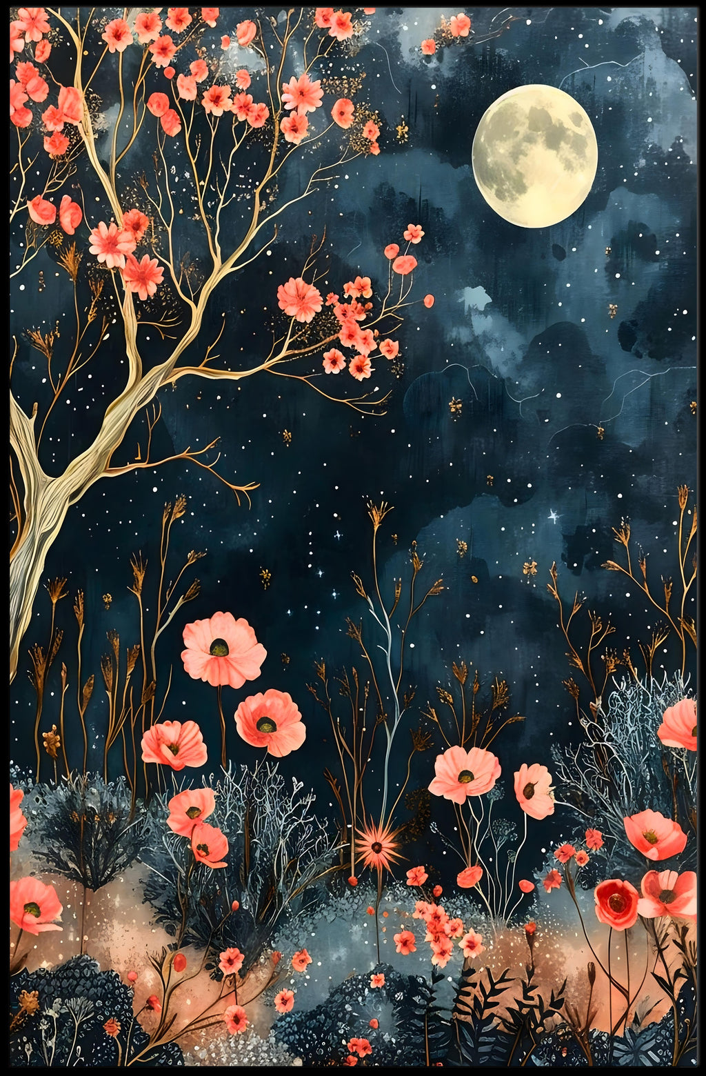 Dreamy Enchanted Garden Under Moonlit Sky Poster