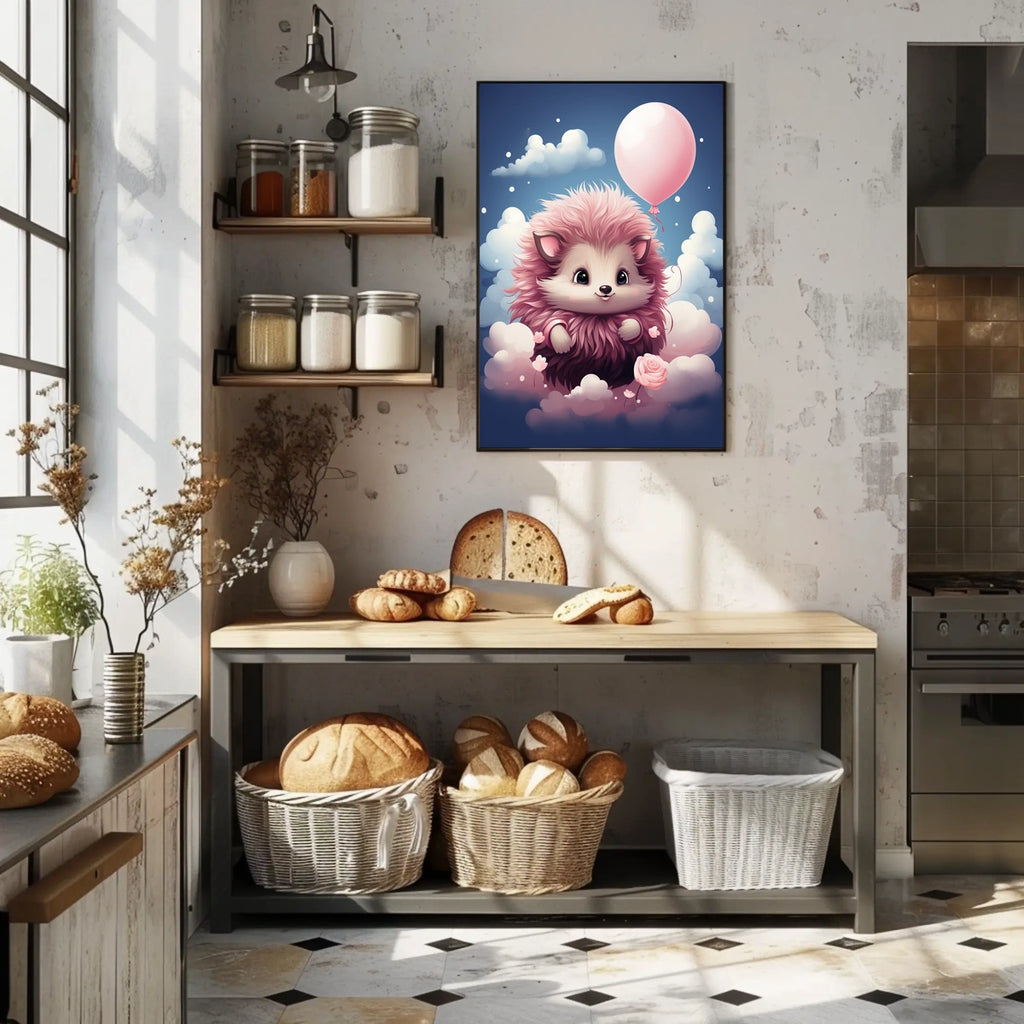 Intro: Embark on a magical journey with Dreamy Hedgehog Adventure, a serene artwork that floats through a cloudscape with a pink balloon and gentle blooms. This whimsical scene invites wonder and calm, making it perfect for bedrooms, nurseries, or cozy living spaces.