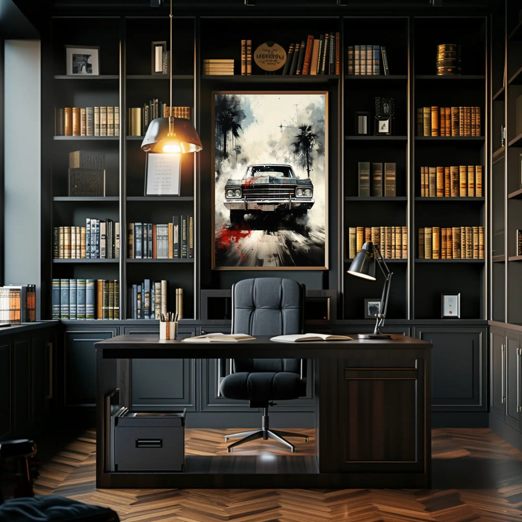 Perfect for: Living rooms, home offices, garages and game rooms — works as a focal poster or layered with other artwork.