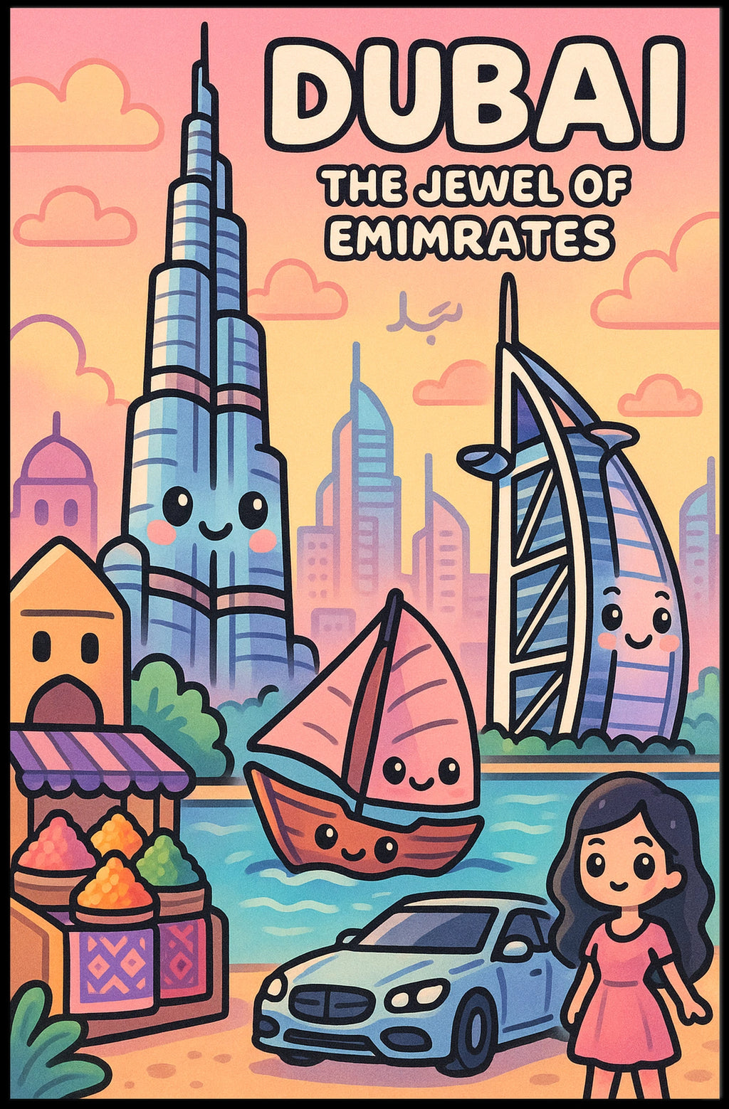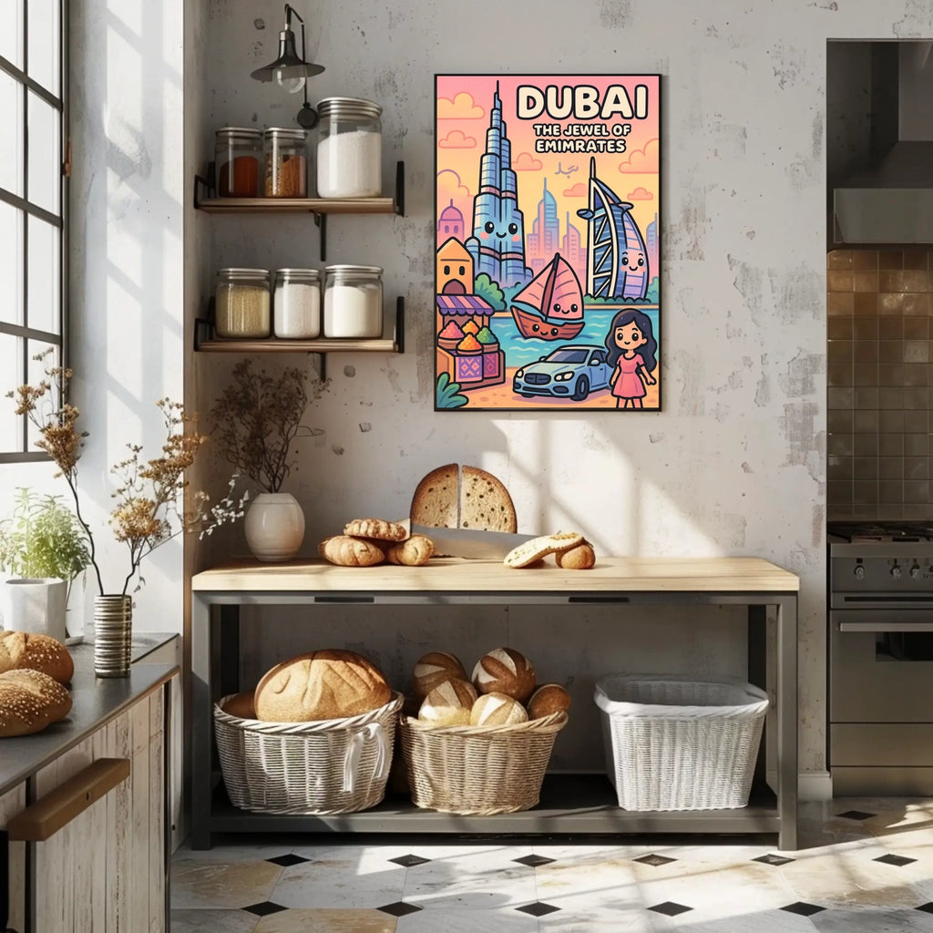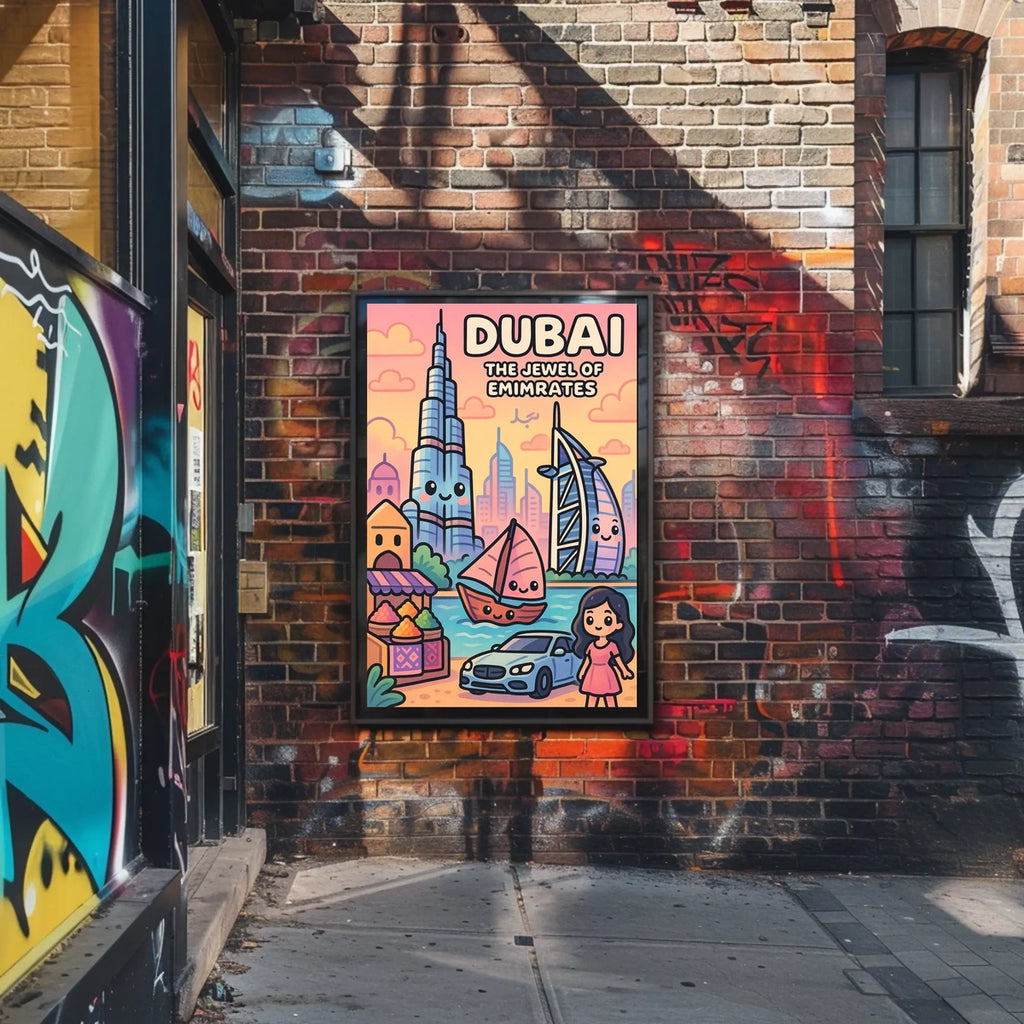 Immerse yourself in the vibrant allure of Dubai with this poster. The Jewel of Emirates blends iconic landmarks, bustling markets, and a luxurious lifestyle into a single travel art piece that brightens any wall with modernity and tradition.