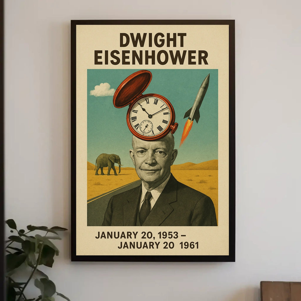 Printed with precision and made to inspire, this artwork is more than decoration—it’s a conversation piece that connects history, culture, and style. Bring the Dwight Eisenhower Presidential Era Poster into your home, classroom, or office today and let your walls tell a powerful story.