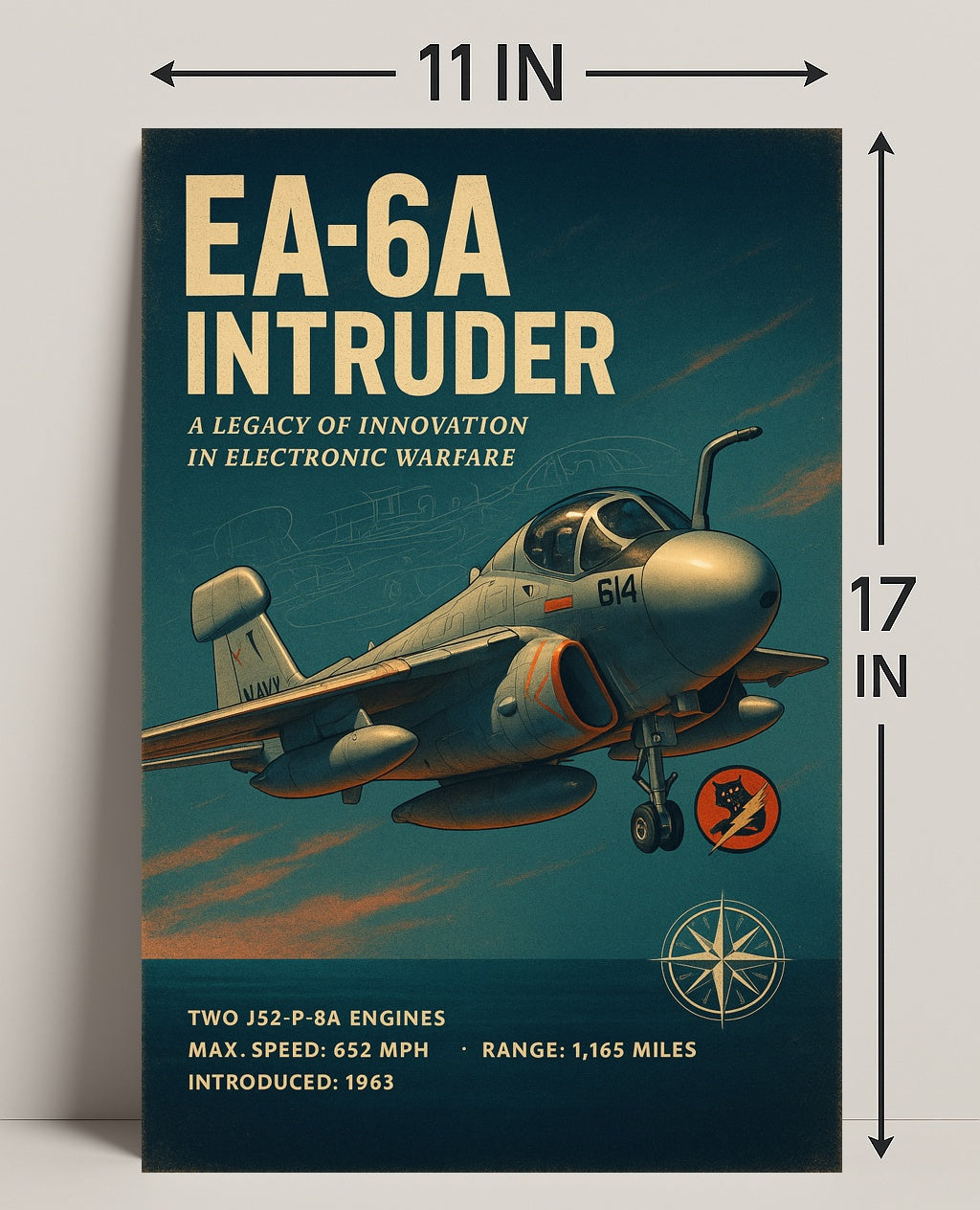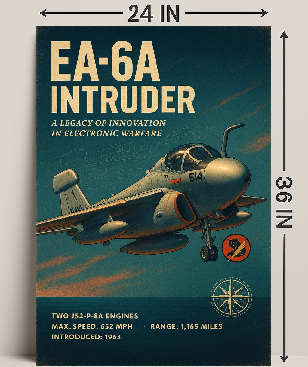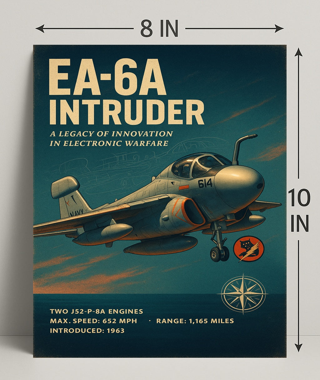 Iconic Design: Features a vintage-inspired illustration of the EA-6A Intruder, celebrated for its role in electronic warfare.