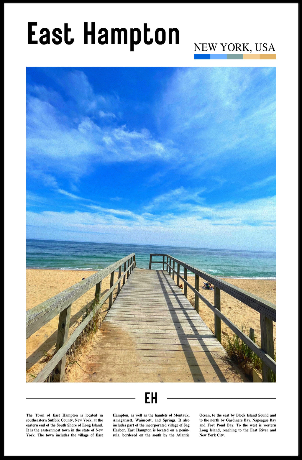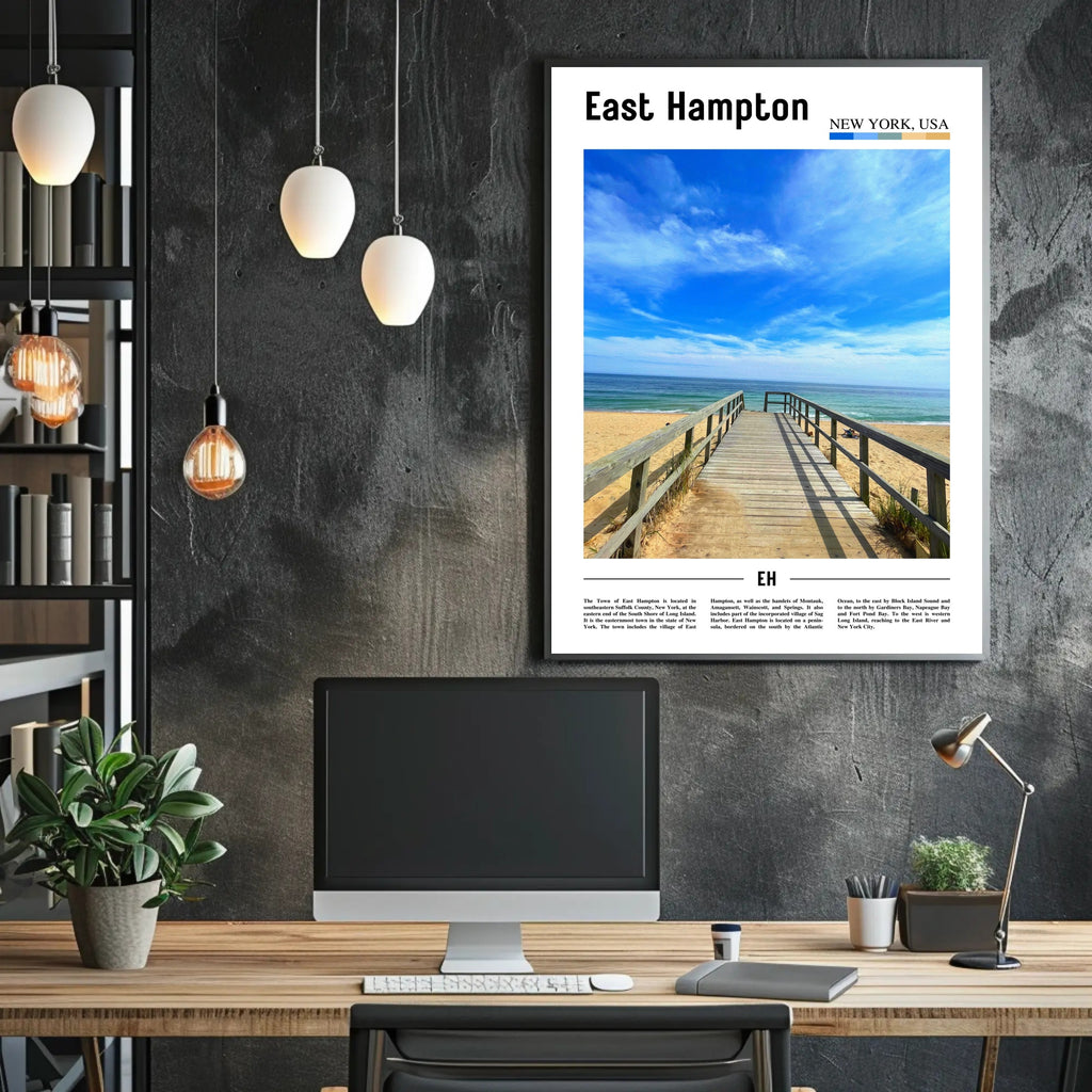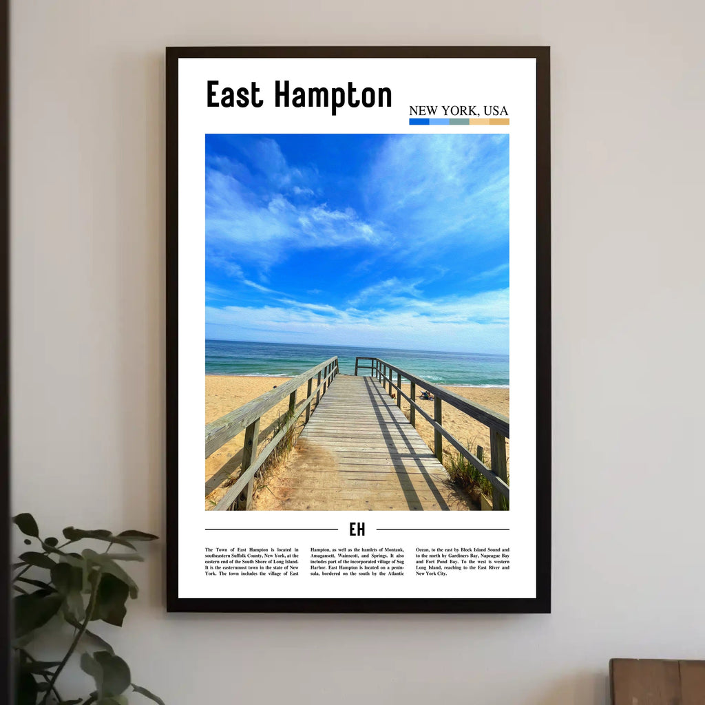 This East Hampton poster makes an elegant statement over a sofa, in a hallway, or as part of a gallery wall — ideal for anyone who loves beach scenes, boardwalk posters, or coastal decor. Add a touch of seaside calm to your space with PosterGoat's beautifully produced print.