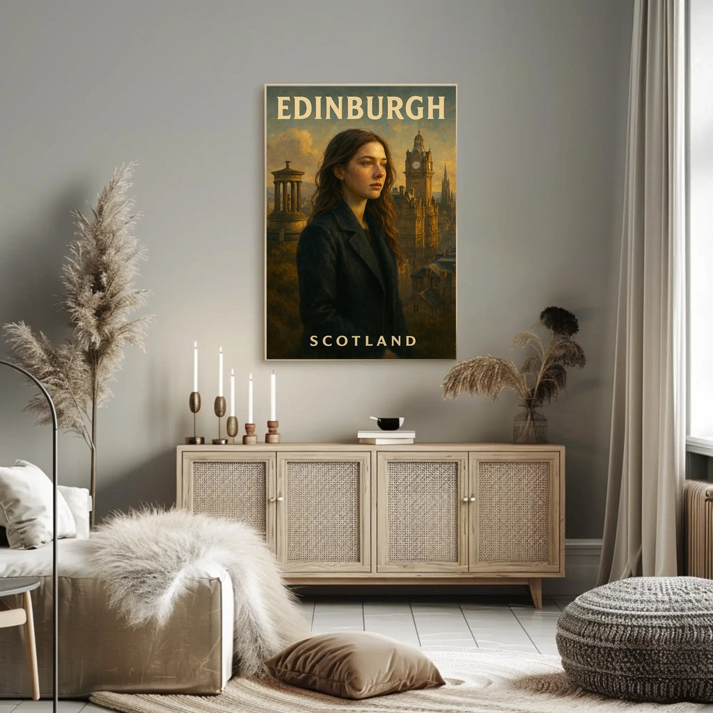 This art print adds charm to any room with visuals inspired by real-world scenery, capturing the essence of Edinburgh for decor lovers and wanderlust spirits alike.