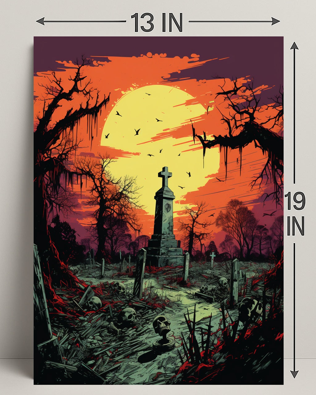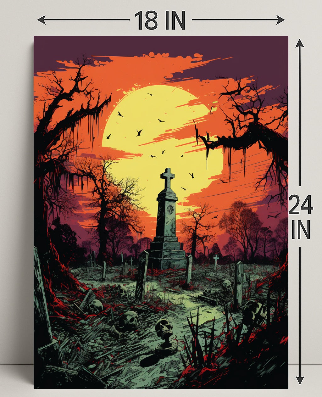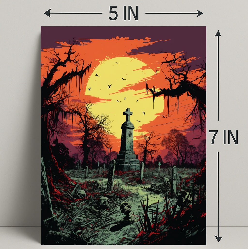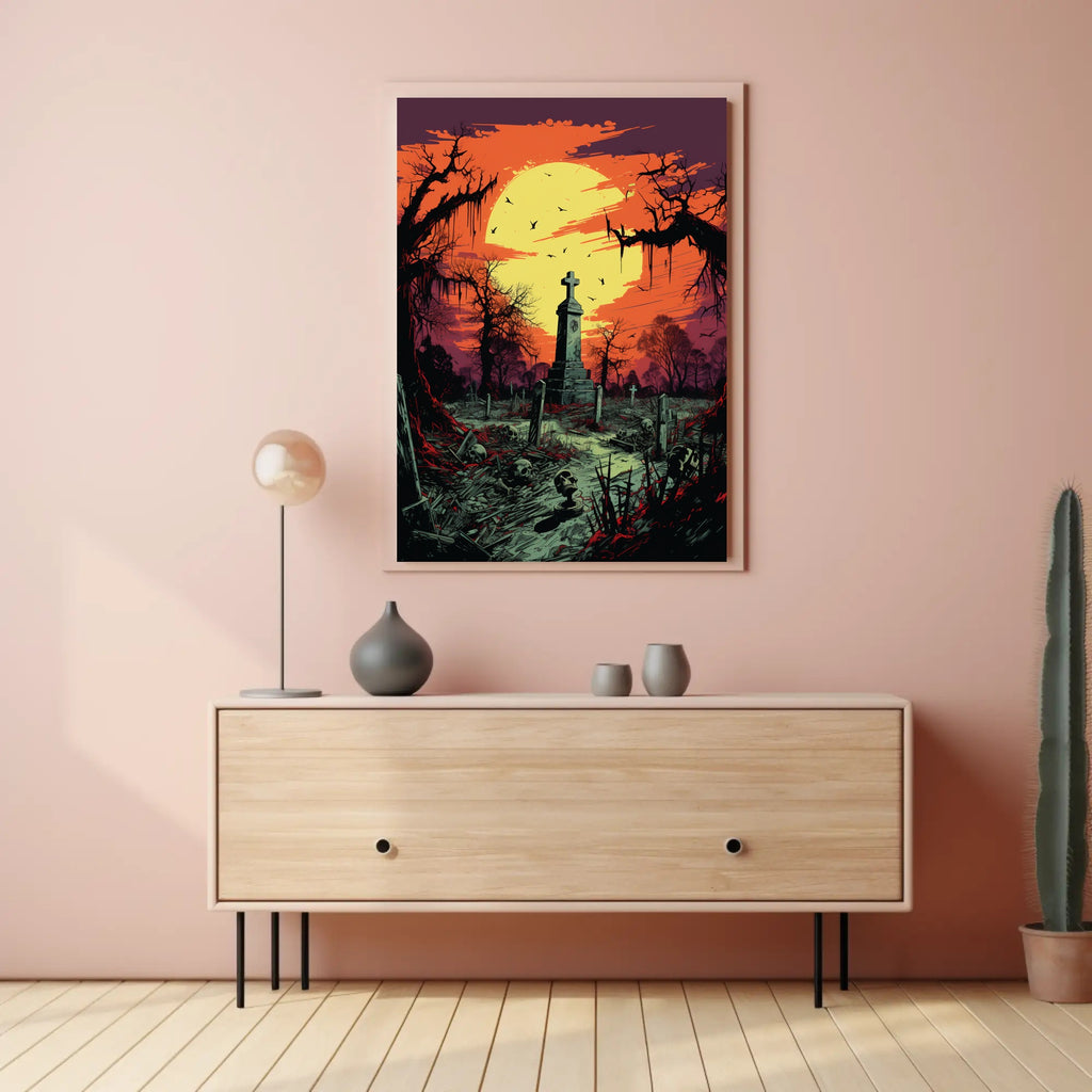Transform your living space with the captivating Eerie Graveyard At Dusk Poster from PosterGoat. This stunning art print embodies the haunting beauty of twilight, inspired by real-world scenery. Perfect for those who appreciate unique decor, this poster adds an enchanting touch to any room, evoking a sense of mystery and adventure.
