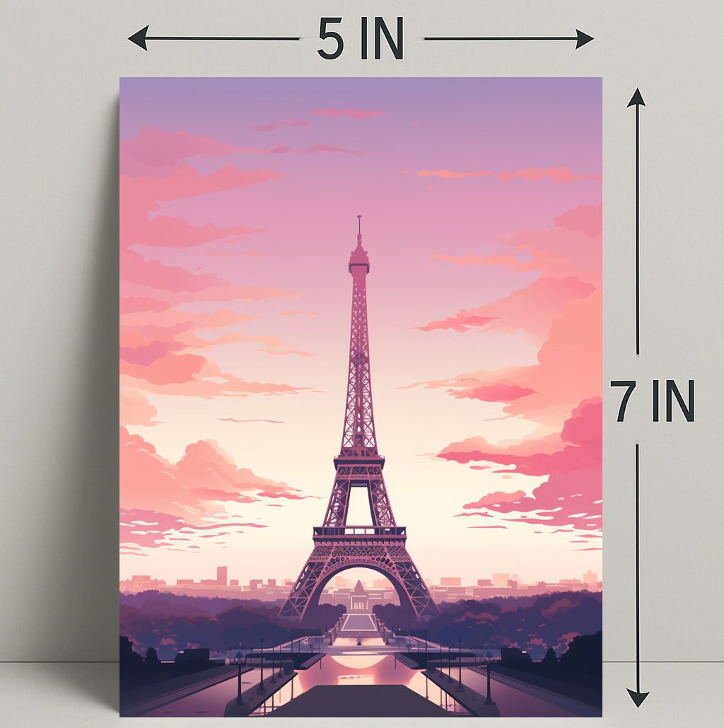 Transform any room with the Eiffel Tower At Sunset Poster from PosterGoat — a minimalist, scenic art print that captures the Parisian icon bathed in soft pinks and purples as the sun dips below the skyline. This striking poster pairs clean, architectural detail with a dreamy sunset palette to create a mood that's both romantic and modern.