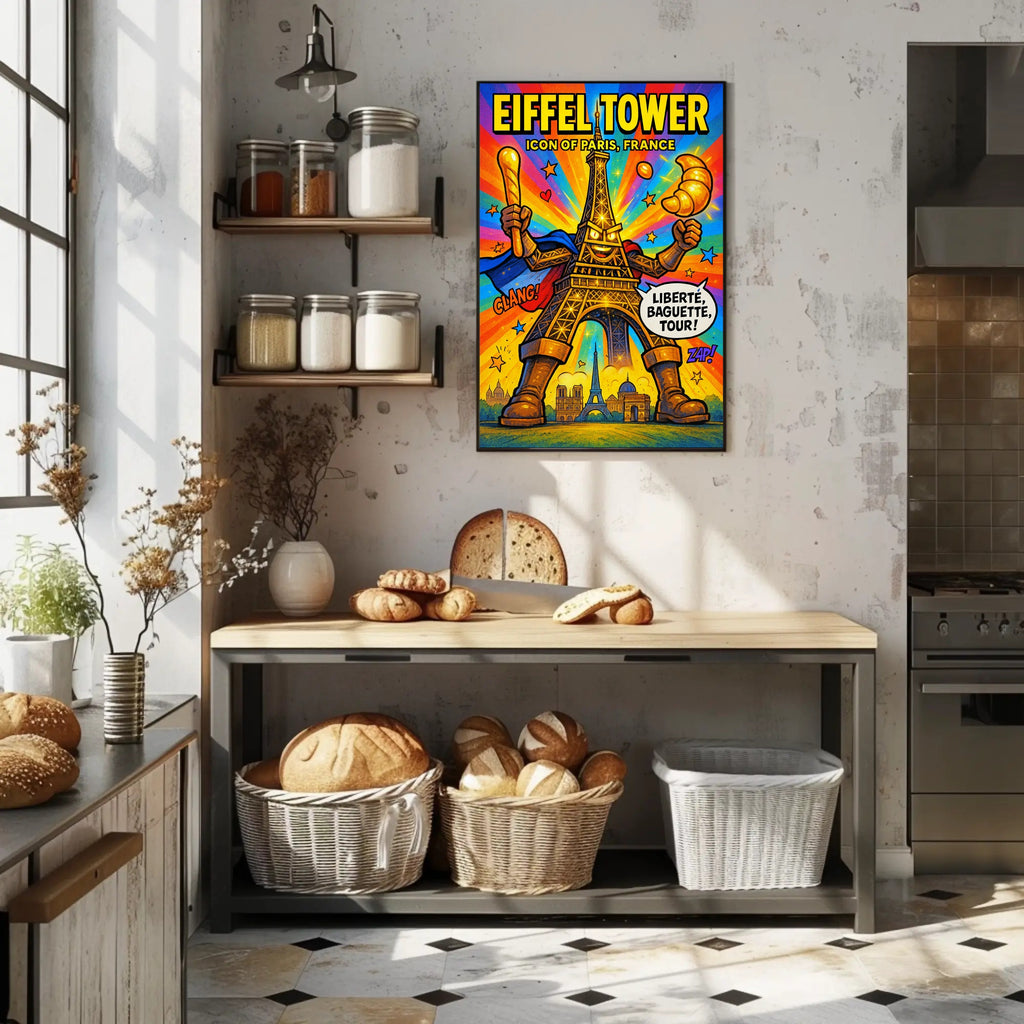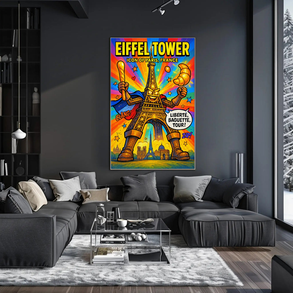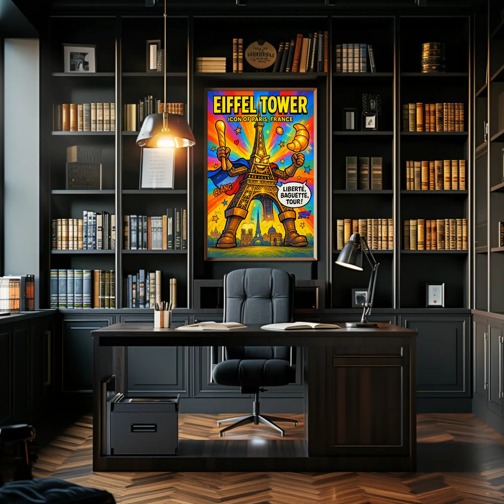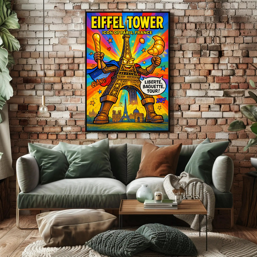Bring Parisian energy into any room with the "Eiffel Tower Iconic Paris Persona Poster" from PosterGoat — a vibrant, comic‑style artwork that transforms the classic Eiffel Tower into a heroic, playful icon. Perfect for home decor enthusiasts and travel lovers, this print adds bold color and whimsical charm to living rooms, bedrooms, offices, and gallery walls.