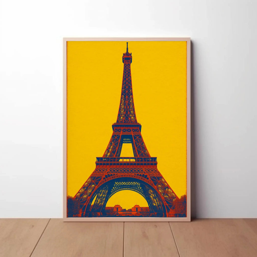 Bring Parisian flair and bold modern energy to your walls with the Eiffel Tower Pop Art Vibe Artistic Poster by PosterGoat. This eye-catching poster pairs a minimalist silhouette of the Eiffel Tower with a pop-art inspired palette—vibrant yellow background and deep blue details—to create a striking focal point that complements contemporary, mid-century, and minimalist interiors.
