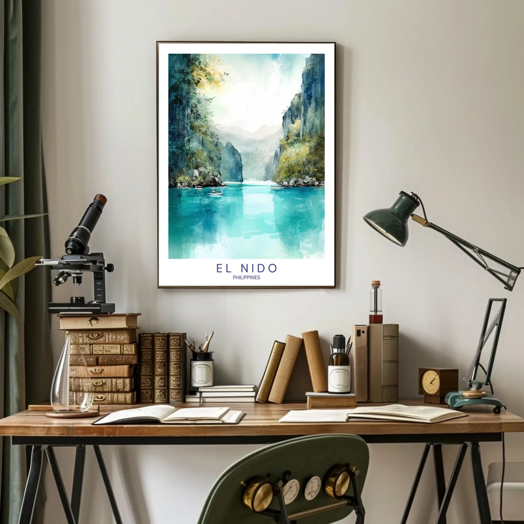 Intro: Experience the magic of El Nido through this evocative poster. Designed for decor lovers and wanderlust souls, it brings tropical vistas, turquoise waters, and dramatic limestone silhouettes into any room with timeless charm.