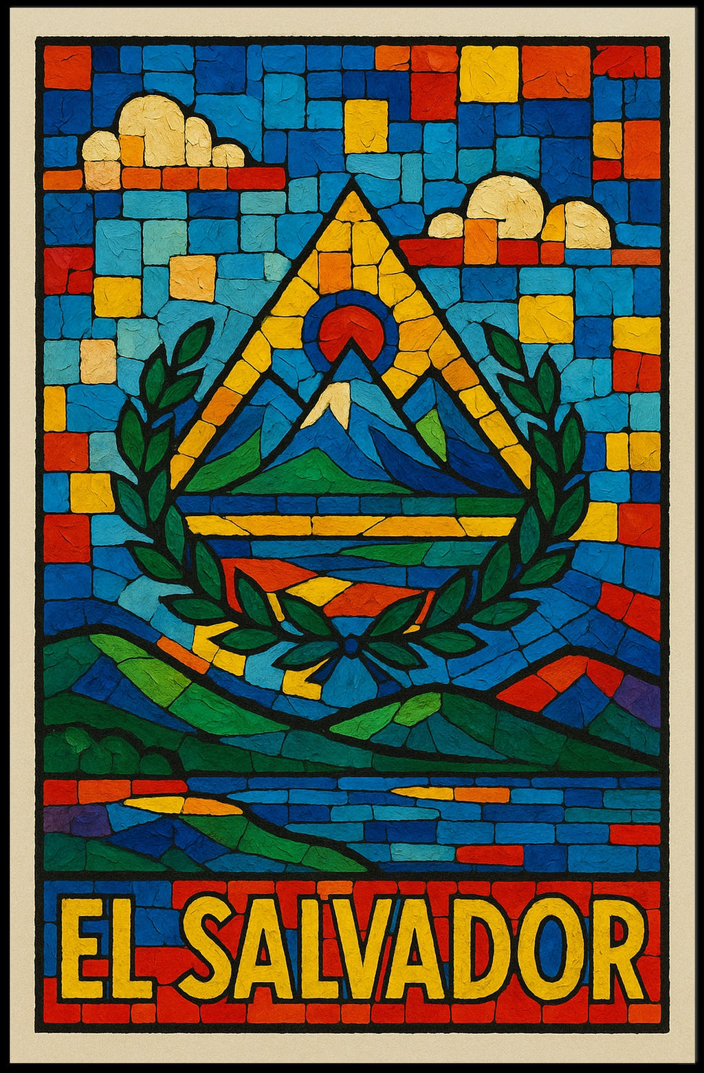 Celebrate the beauty of El Salvador A Vibrant Mosaic Poster with this timeless wall art. Designed to capture its unique appeal, this piece is perfect for collectors, enthusiasts, or anyone who wants to bring meaning and inspiration into their space.