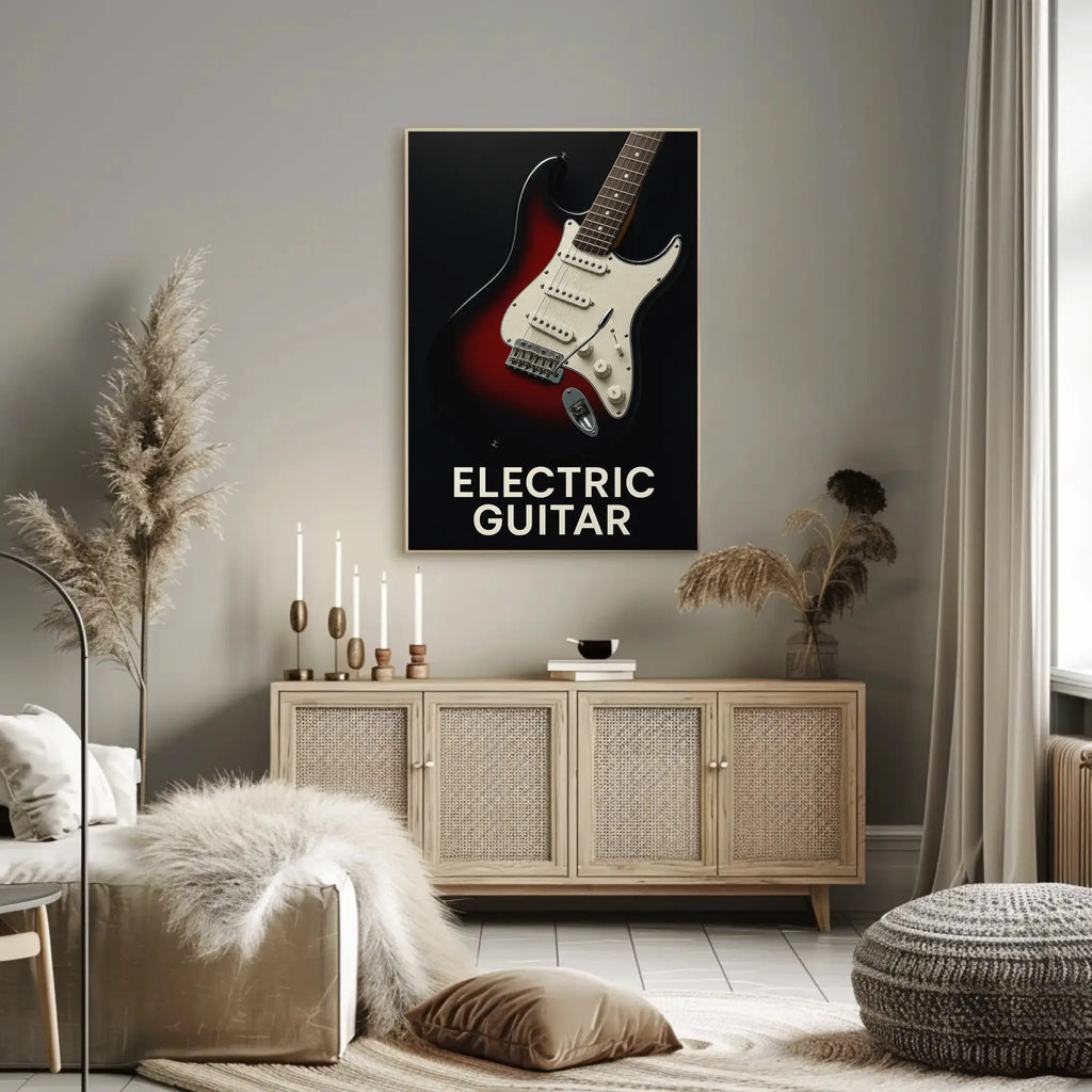 - Iconic design: Bold, minimalist typography reading ELECTRIC GUITAR anchors the image and creates an instant focal point for any room.