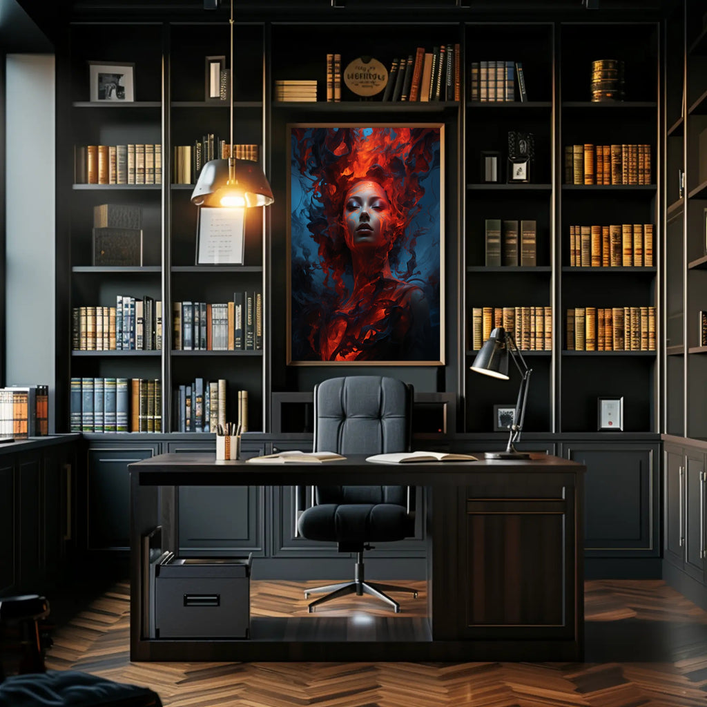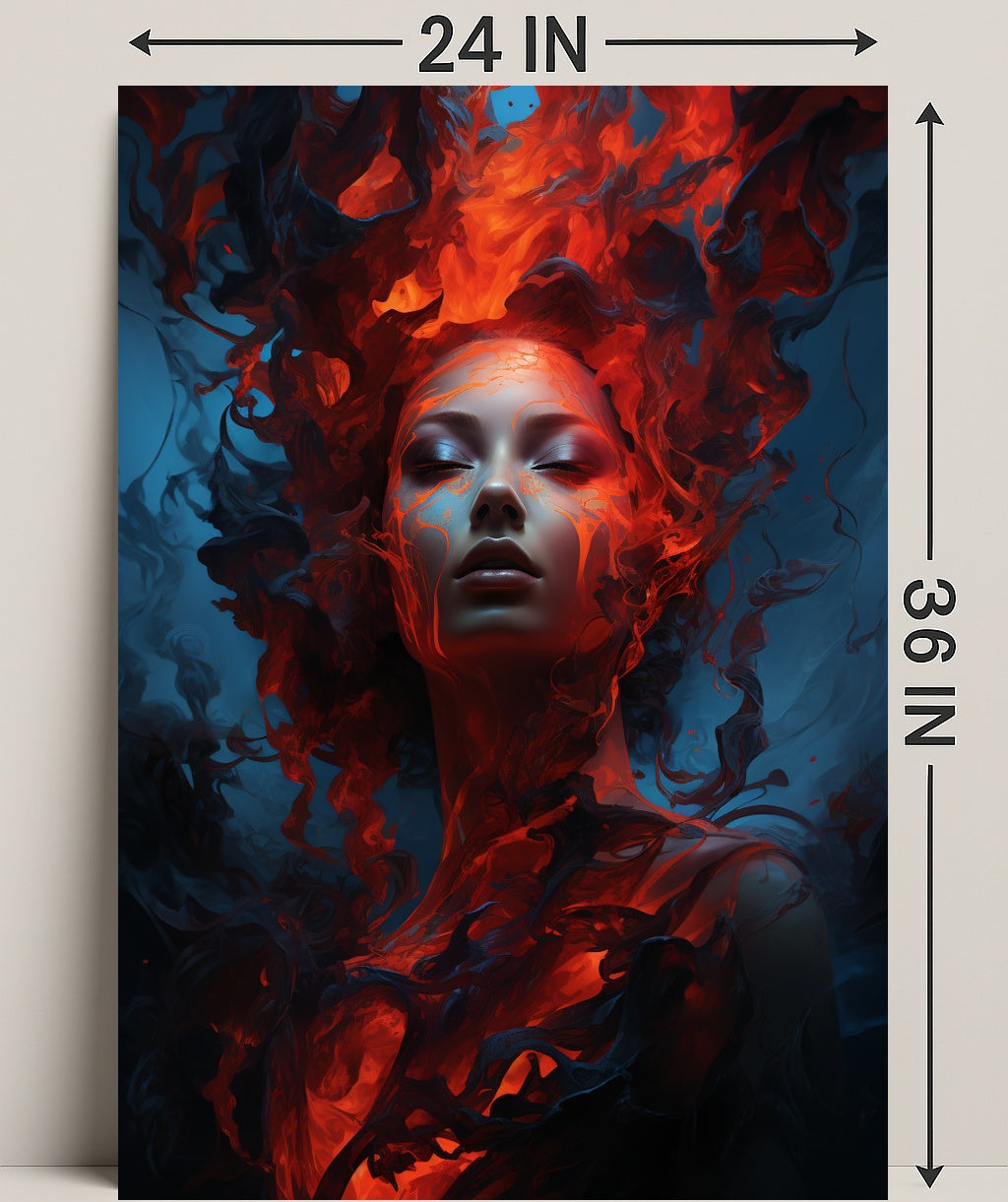 Striking Visuals: The intense colors and dynamic design bring the elemental flame to life, making a bold statement in your home.