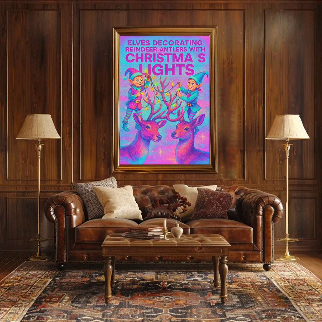 - Printed with precision and made to inspire, this artwork is more than decoration—it’s a conversation piece that connects imagination, nature, and style. Bring Elves Decorating Reindeer Antlers Poster into your home, classroom, or office today and let your walls tell a memorable festive story.
