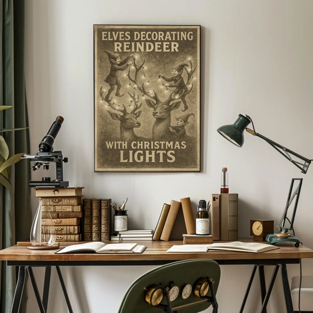 Printed with precision and made to inspire, this artwork is more than decoration—it’s a conversation piece that connects history, culture, and style. A thoughtful gift and perfect souvenir for art lovers, Elves Decorating Reindeer Poster brings scenic charm to your home, classroom, or office—let your walls tell a powerful story.