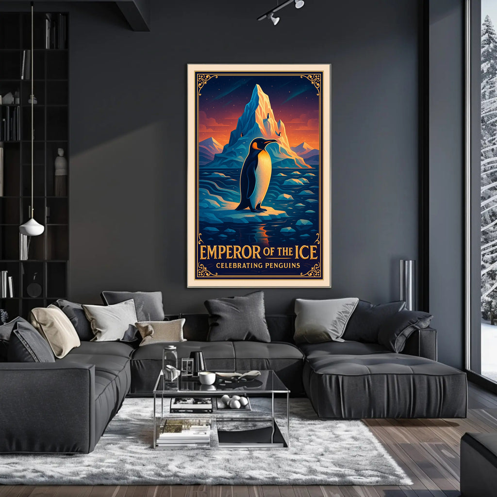 Emperor Penguin Majesty in Icy Landscape Animal Poster