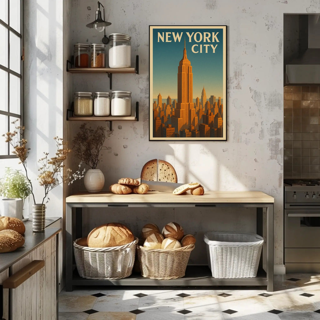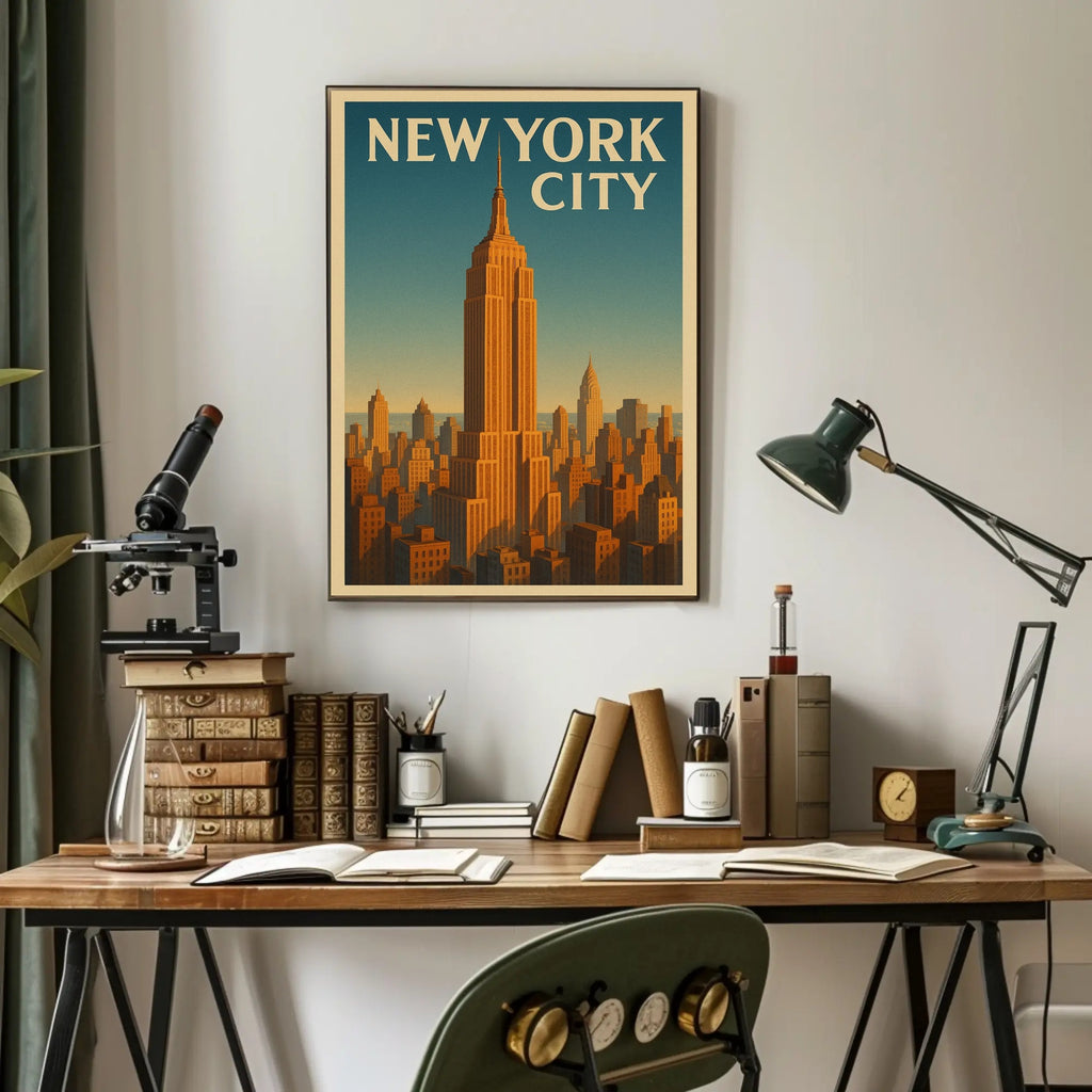Transform your living space with the Empire State Building Vintage New York Travel Poster, a breathtaking piece of art that encapsulates the essence of New York City. This stunning vintage travel poster showcases a stylized illustration of the iconic Empire State Building, one of the most recognizable landmarks in the world. Designed with warm gradient colors, it evokes the calm of a sunset or sunrise, inviting a sense of nostalgia and sophistication into your home or office. Perfect for art lovers and city enthusiasts alike, this poster adds a classic touch to any decor.