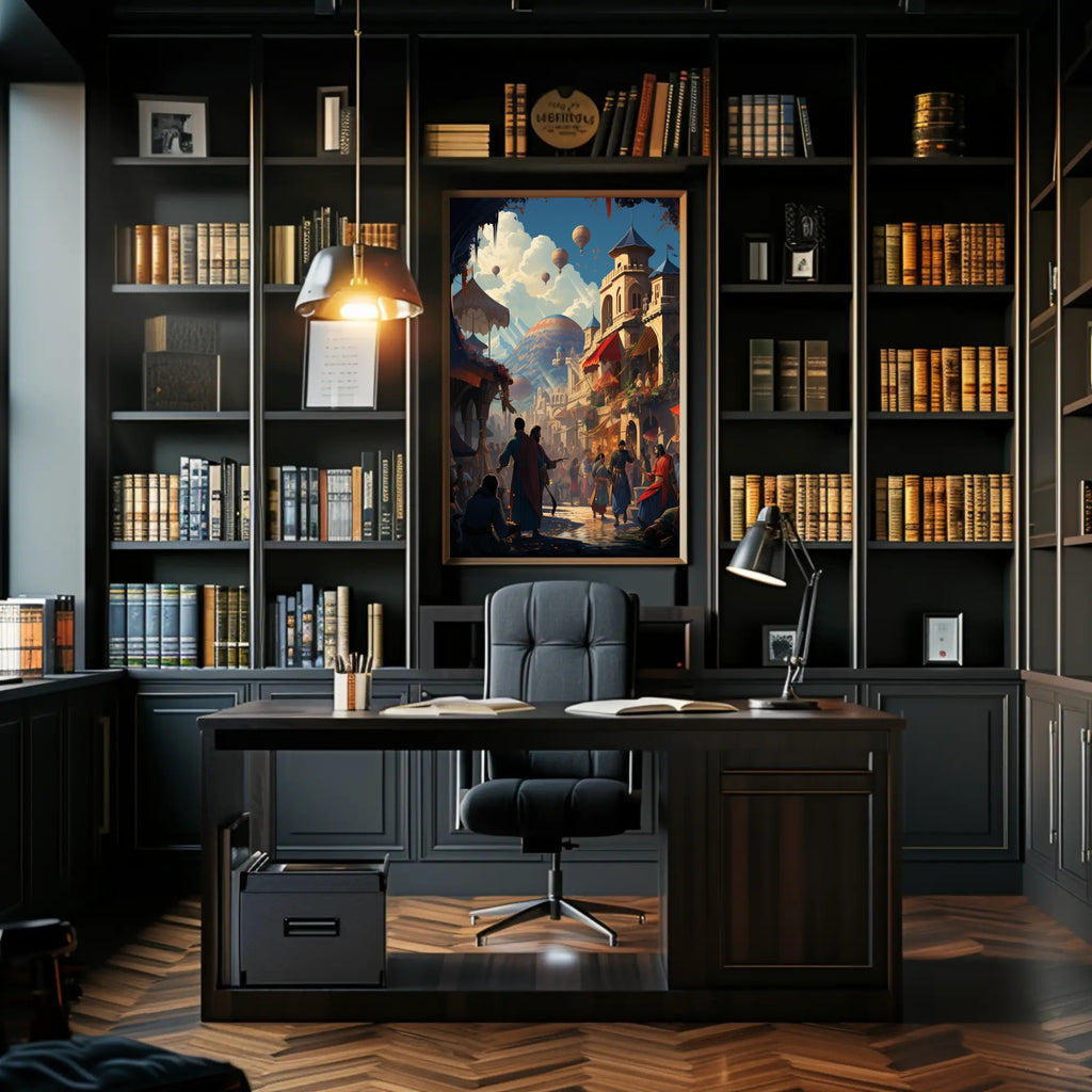 Whether you collect travel-inspired scenes, search for a standout gift, or want a striking souvenir of imagination, the Enchanted Bazaar Poster transforms a blank wall into a lively, immersive tableau.