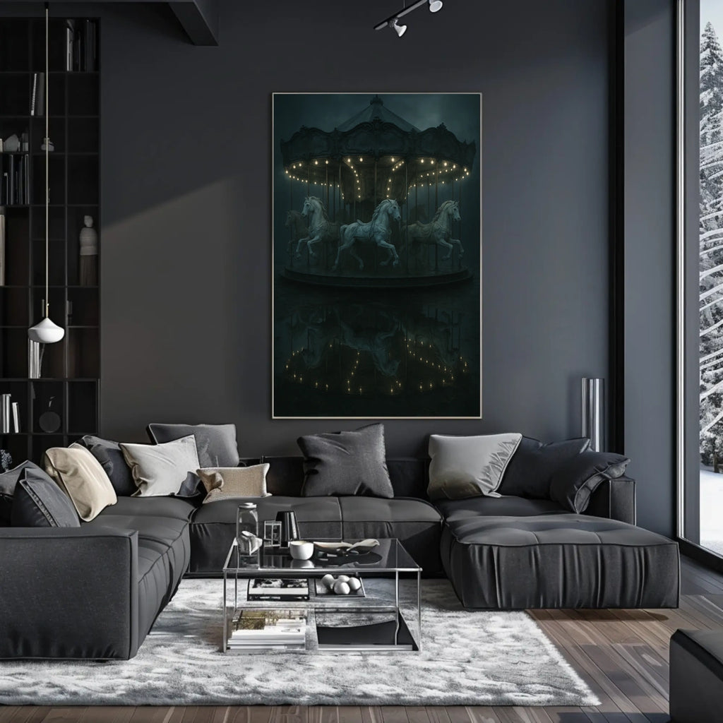 Explore the charm of Enchanted Carousel Poster as a centerpiece for any room. This wall art blends nostalgia with modern decor, perfect for those who collect scenic pieces or seek a touch of wanderlust in their space.