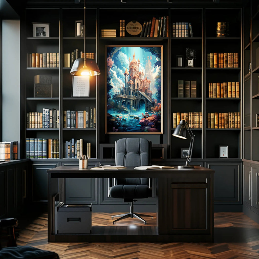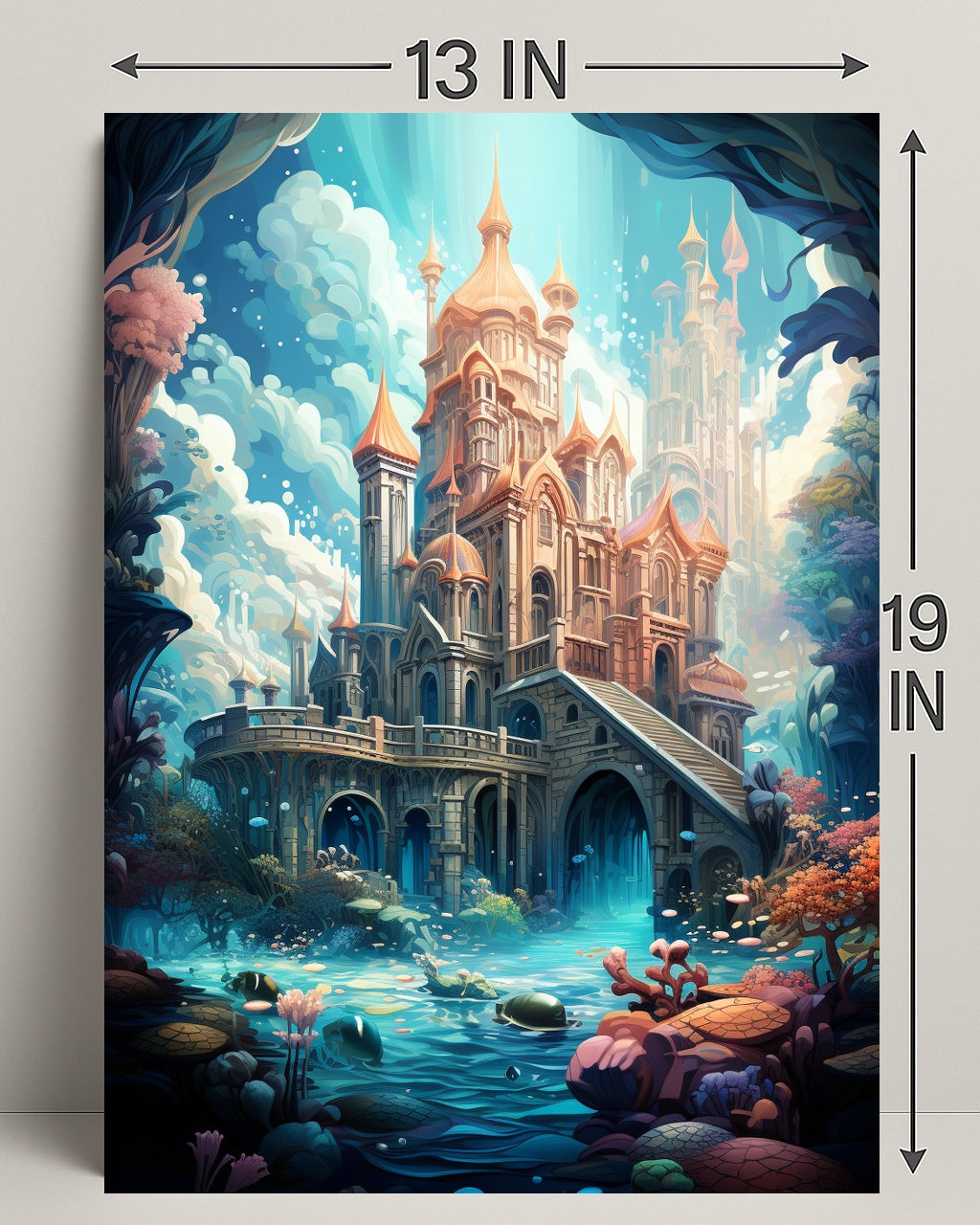 Bring a sense of wonder to your walls with the Enchanted Castle By The Sea Poster from PosterGoat — a breathtaking art print that blends classic castle architecture with a dreamy seascape and vibrant, ocean-inspired colors. This poster captures intricate stonework, gilded spires, and a luminous sky reflected in shimmering waters for a cinematic focal point in any room.
