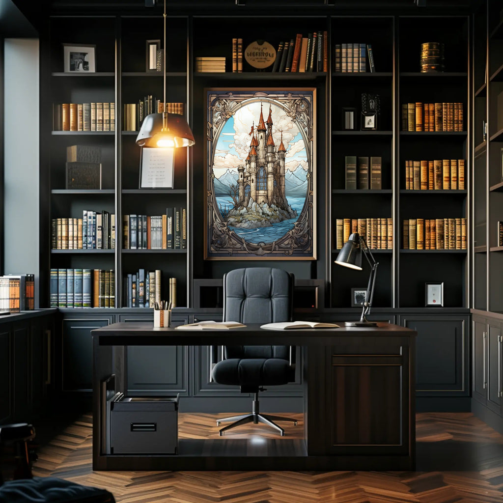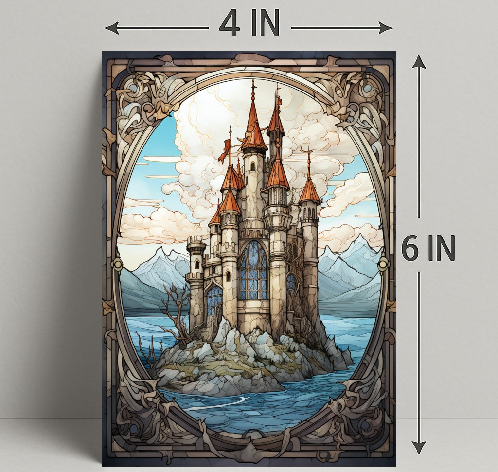 Timeless motif: The castle-and-sea theme blends fantasy and travel aesthetics to suit Art & Aesthetic and Travel & Places collections.