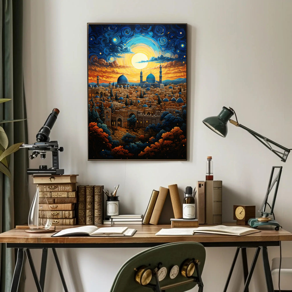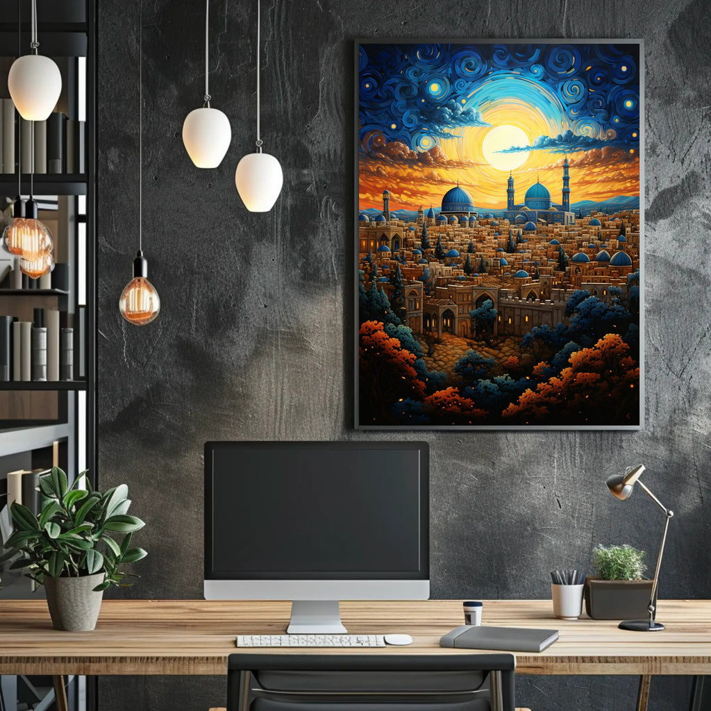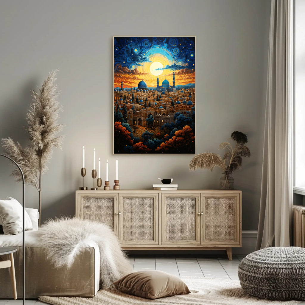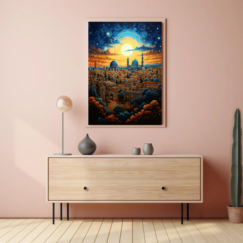 Elevate your decor with the Enchanted Cityscape At Dusk Poster by PosterGoat. Its enchanting visuals and quality craftsmanship make it more than just wall art; it's a conversation starter. Don’t miss out on the chance to enhance your space—order yours today!