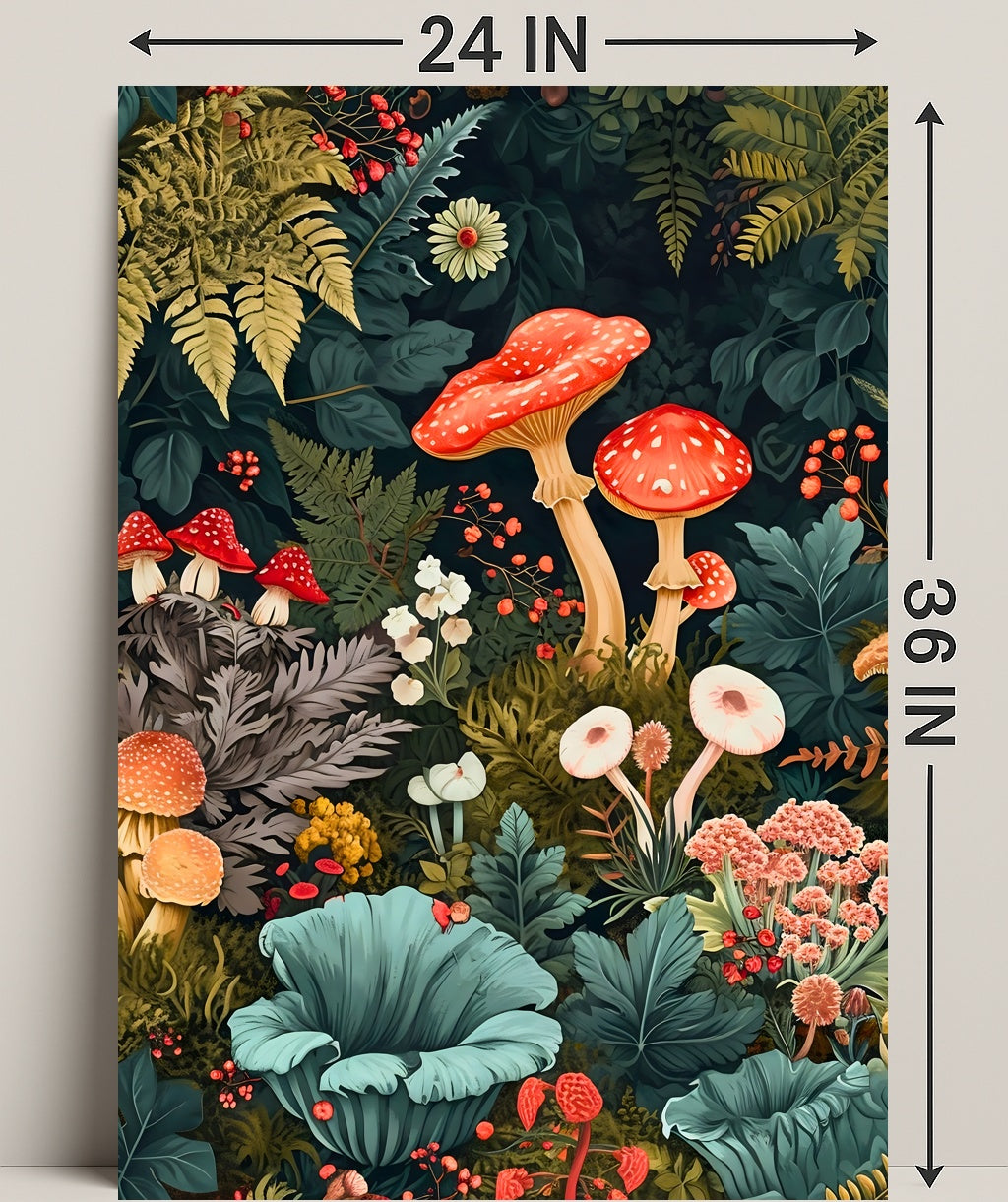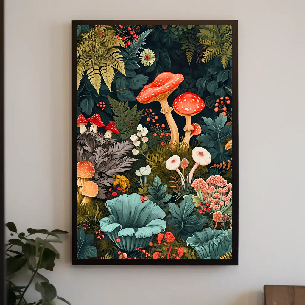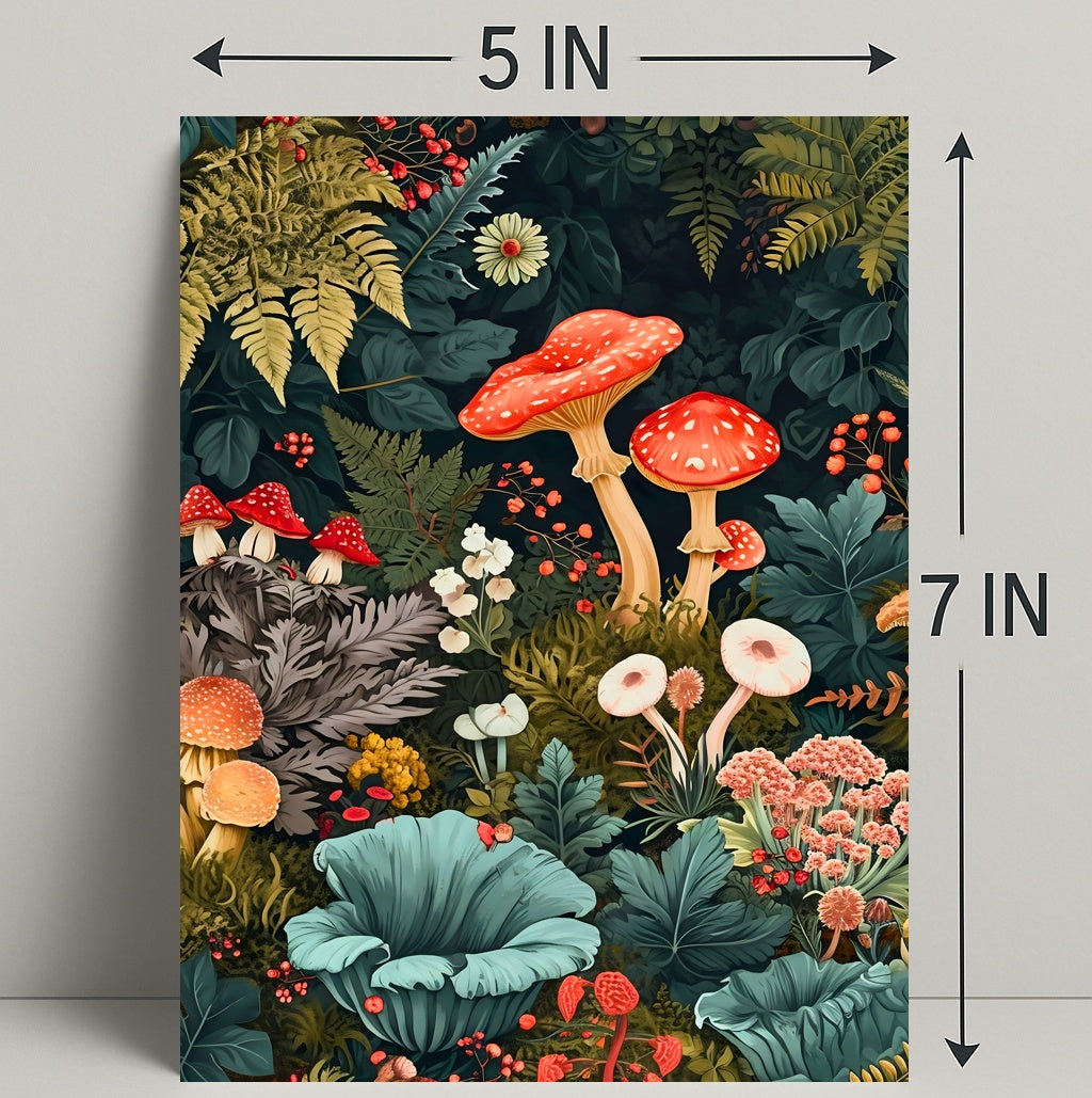 Museum-quality print: High-resolution artwork reproduction captures intricate leaf textures, layered ferns, and delicate mushroom caps for vivid, long-lasting color.